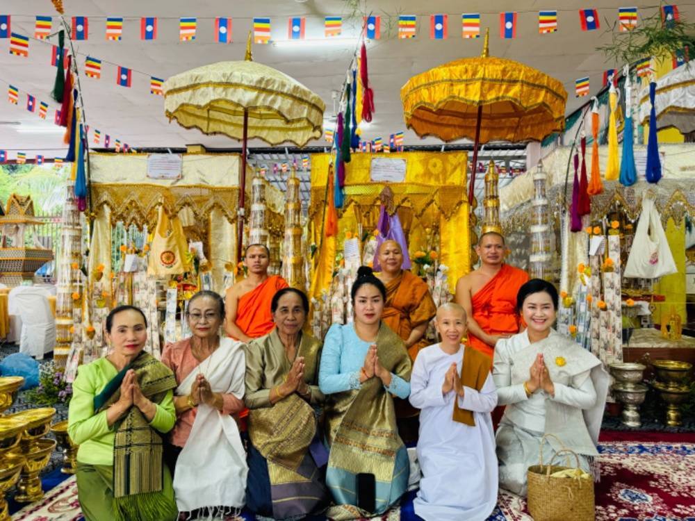 “Chúng con vô cùng hạnh phúc, đã chờ đợi ngày này rất lâu rồi để được làm thí chủ cúng dường lễ tôn vinh các nhà Sư đức hạnh tại quê hương của chúng con. Chúng con rất vui mừng được cung đón quý Chư Tăng và Phật Tử từ Việt Nam sang tham dự chung vui và chúc mừng. Phước báu có được, con xin thành tâm hồi hướng đến thân bằng quyến thuộc đã quá vãng được siêu thoát, ông bà cha mẹ ân nhân tại tiền trường thọ an vui, Phật giáo trường tồn. Cầu nguyện tình cảm yêu thương đoàn kết vĩ đại của nhân dân hai nước Việt -Lào mãi mãi xanh tươi, đời đời bền vững”