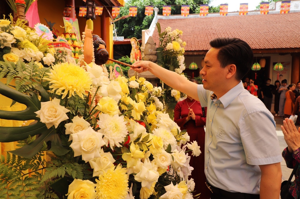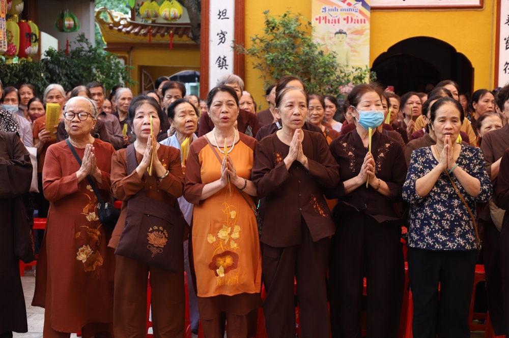 Tại buổi lễ chư Tôn đức cùng toàn thể Đại chúng cử hành nghi lễ tụng kinh Phật đản truyền thống và làm lễ tắm tôn tượng đức Phật. Tất cả hàng Phật tử đều thành kính như đang được tắm mình trong ánh hào quang của Đức Phật ngày Đản sinh.