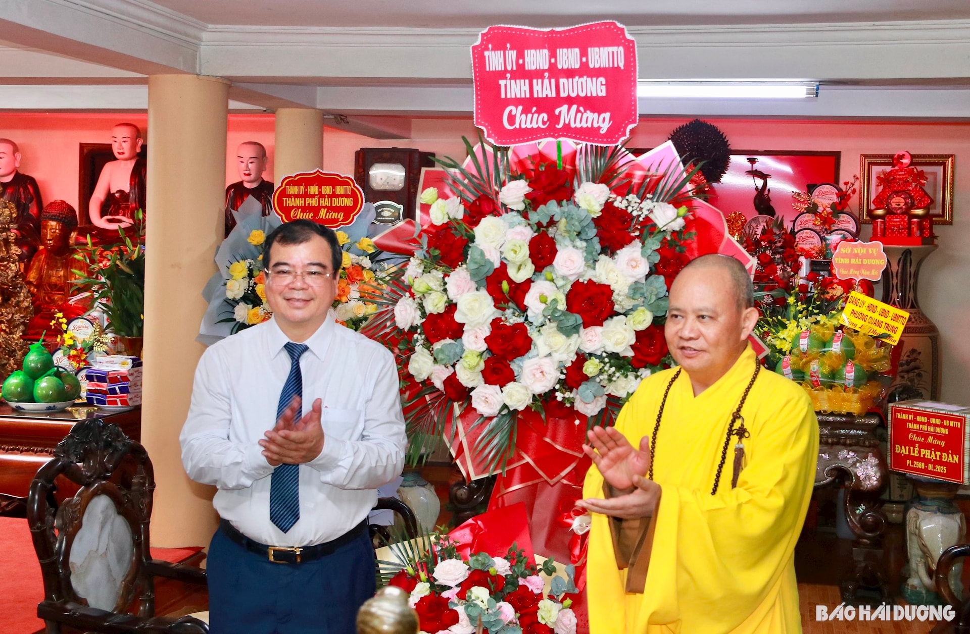Phó Chủ tịch UBND tỉnh Hải Dương mong muốn các chức sắc, tăng, ni, phật tử phát huy tinh thần đoàn kết, góp phần xây dựng tỉnh ngày càng phát triển.