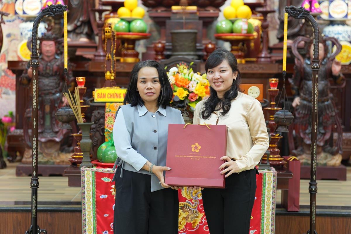 Tại buổi làm việc, bà Lê Nguyệt Anh và các chuyên viên Trung tâm Phục vụ hành chính công đã hướng dẫn chư Tăng Ni cài đặt và sử dụng ứng dụng “iHàNội” – một công cụ hỗ trợ đăng ký thủ tục hành chính nhanh chóng, minh bạch, giảm giấy tờ và tăng hiệu quả xử lý. Theo bà, Trung tâm PVHCC cùng các chi nhánh sẽ đóng vai trò “cầu nối” – không chỉ tiếp nhận hồ sơ mà còn đồng hành, giải đáp và hỗ trợ người dân, tổ chức hoàn thiện thủ tục một cách thuận tiện, tiết kiệm thời gian. Nhân dịp này, bà cũng gửi tặng những phần quà tri ân tới Ban Trị sự GHPGVN TP. Hà Nội, Sở Dân tộc và Tôn giáo cùng lãnh đạo Trường Trung cấp Phật học Hà Nội.