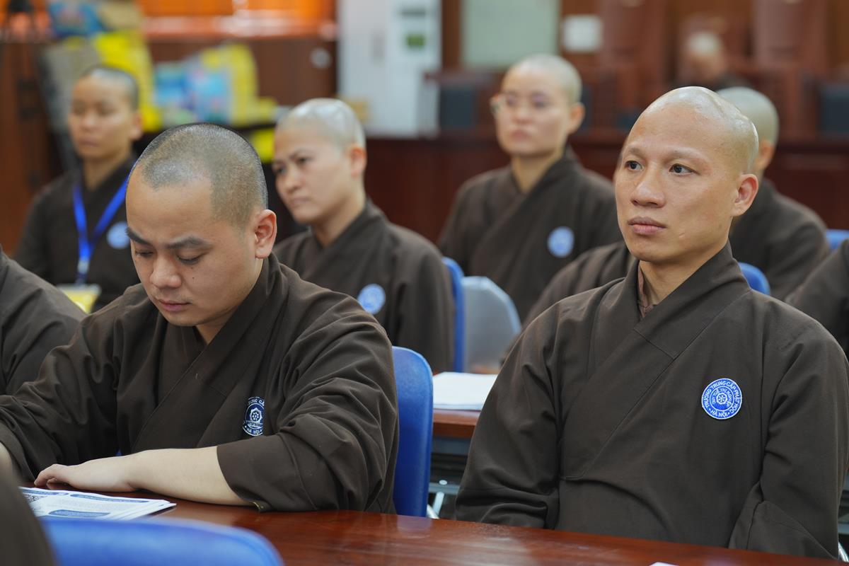 Trong khuôn khổ chương trình, Đại úy Trần Quân Thụy – Cán bộ Đội tuyên truyền Phòng CSGT, CATP Hà Nội – đã chia sẻ những kiến thức thiết thực về văn hóa và kỹ năng tham gia giao thông an toàn. Từ những quy định pháp luật cơ bản đến các tình huống thực tế thường gặp trên đường, tất cả đều được truyền tải bằng hình ảnh minh họa, dẫn chứng thực tế, giúp chư Tăng Ni dễ dàng tiếp thu và áp dụng vào đời sống, góp phần xây dựng thói quen tham gia giao thông văn minh, an toàn và tôn trọng luật lệ.