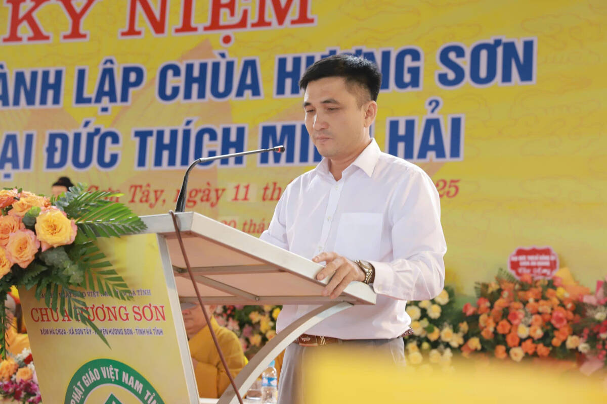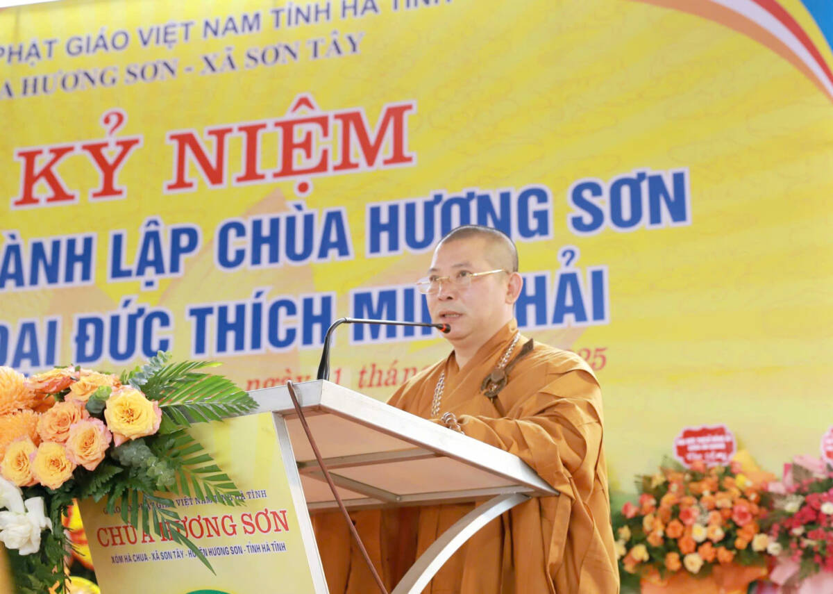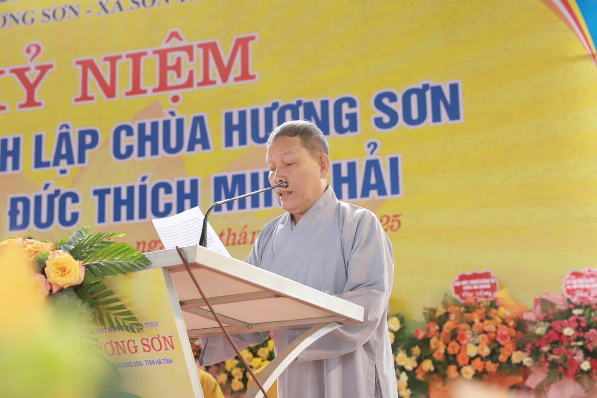 Buổi lễ diễn ra trong không khí trang nghiêm, thanh tịnh dưới sự chứng minh của Đức Trưởng lão Hòa thượng đạo hiệu thượng Lưu hạ Hòa – Thành viên Hội đồng Chứng minh Trung ương GHPGVN, Chứng minh Ban Trị sự GHPGVN thành phố Huế, Trụ trì Chùa Tổ Trúc Lâm Đại Thánh, thành phố Huế; Hòa thượng Thích Tâm Thanh – Giám tự Tổ đình Trúc Lâm Đại Thánh, thành phố Huế; Thượng tọa Thích Viên Như – Ủy viên Hội đồng Trị sự, Phó Trưởng ban Trị sự GHPGVN tỉnh Hà Tĩnh; Thượng tọa Thích Hạnh Nhẫn – Phó Ban Trị sự GHPGVN tỉnh Hà Tĩnh; Thượng tọa Thích Minh Tuệ – Ủy viên Thường trực Ban Trị sự GHPGVN thành phố Huế; Thượng tọa Thích Quảng Nguyên – Ủy viên Hội đồng Trị sự, Phó Ban Trị sự GHPGVN tỉnh Hà Tĩnh; Thượng tọa Thích Định Tuệ – Ủy viên Thường trực, Trưởng Ban Truyền thông GHPGVN tỉnh Nghệ An; TT Thích Tâm Phương, Uỷ viên TT PG tỉnh cũng là người đặt bước chân đầu tiên khai sơn chùa Hương Sơn, thầy nghiệp sư của đại đức Thích Minh Hải, trưởng Ban tổ chức lễ kỷ niệm, cùng chư Tôn đức Thường trực Ban Trị sự GHPGVN tỉnh Hà Tĩnh, chư Tôn đức Tăng Ni trú trì các tự viện trong và ngoài tỉnh đồng về tham dự, chứng minh buổi lễ.