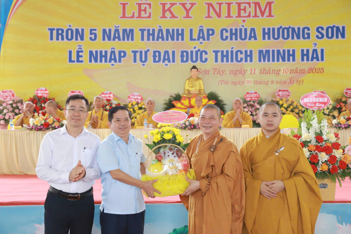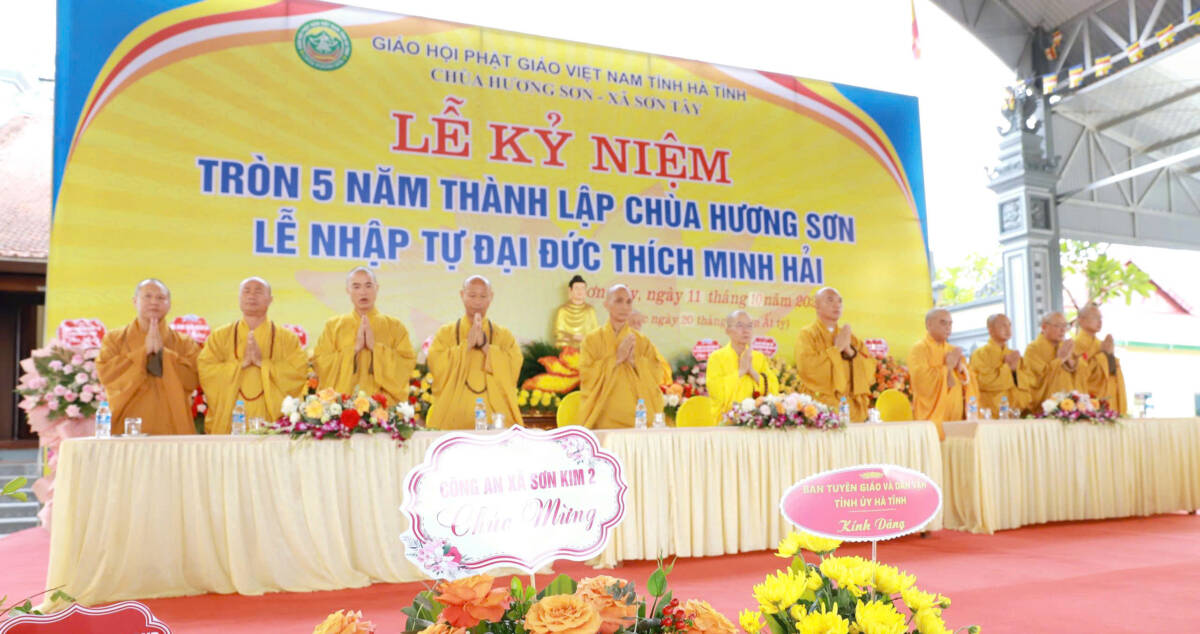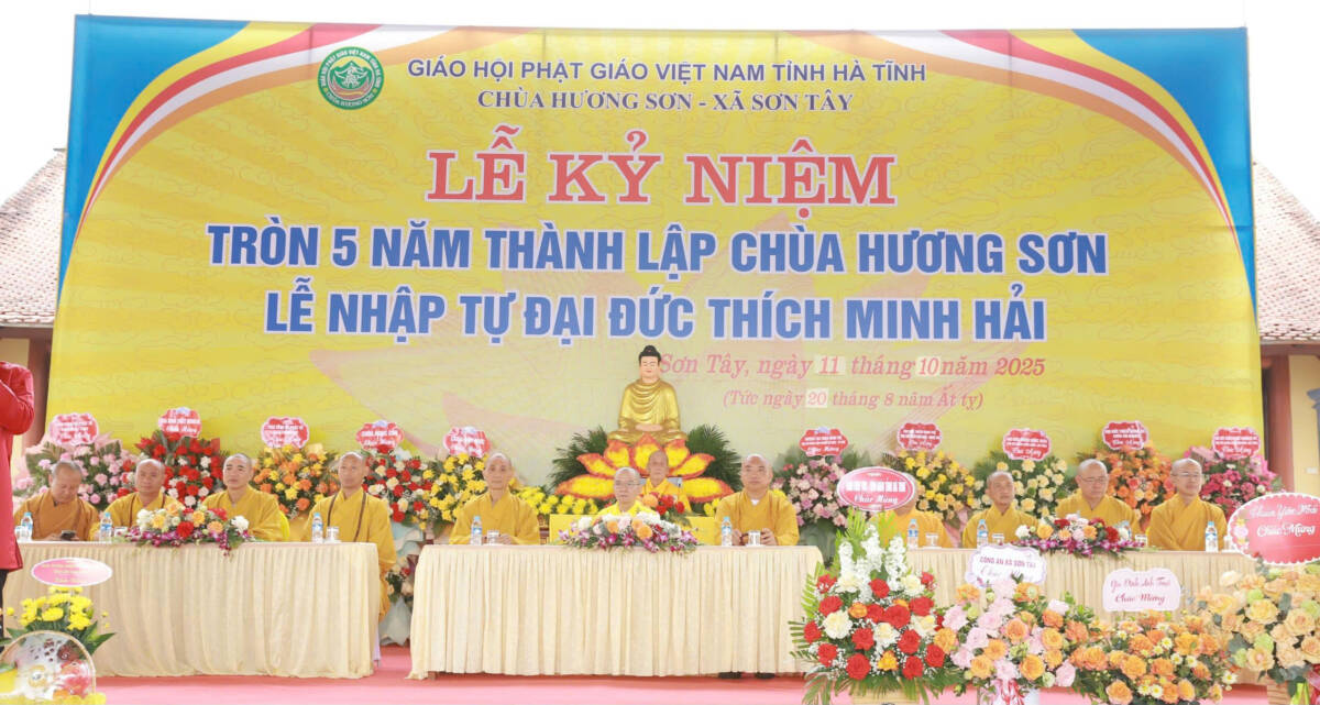 Ngày 11 tháng 10 năm 2025 (nhằm ngày 20 tháng 8 năm Ất Tỵ), trong không khí trang nghiêm và thanh tịnh, chùa Hương Sơn, xã Sơn Tây, tỉnh Hà Tĩnh, long trọng tổ chức Lễ Kỷ niệm 5 năm thành lập chùa và Lễ Nhập tự Đại đức Thích Minh Hải.
