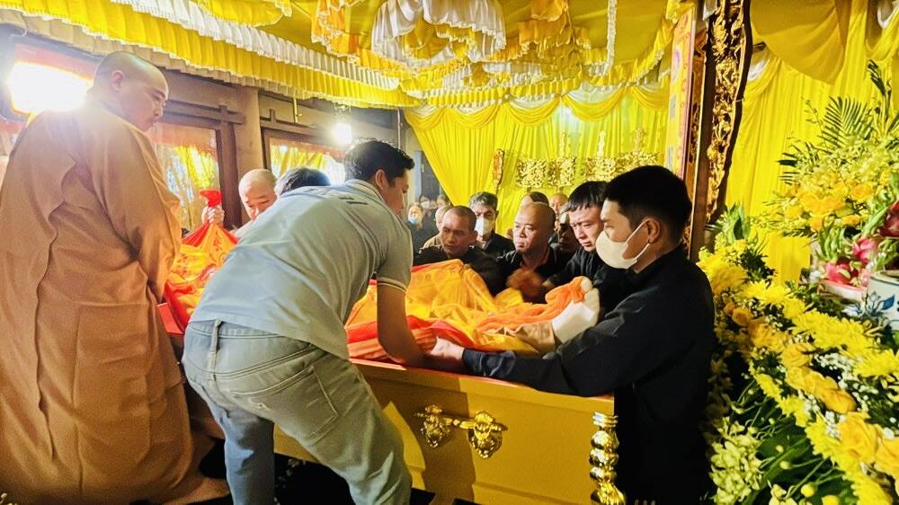 Chiều ngày 02/12/2025 (nhằm 13/10/Ất Tỵ), trong không khí trầm mặc và trang nghiêm nơi Giác linh đường chùa Bà Đậu, xã Vạn Xuân, tỉnh Hưng Yên, môn đồ pháp quyến cùng chư tôn đức Tăng Ni đã cử hành Nghi thức cung thỉnh nhục thân cố Đại đức Thích Thanh Ngọc – Đạo hiệu Trực Tâm nhập kim quan.