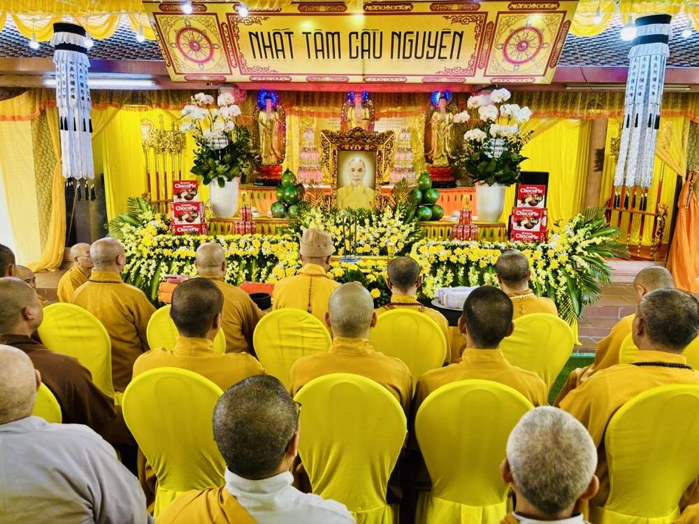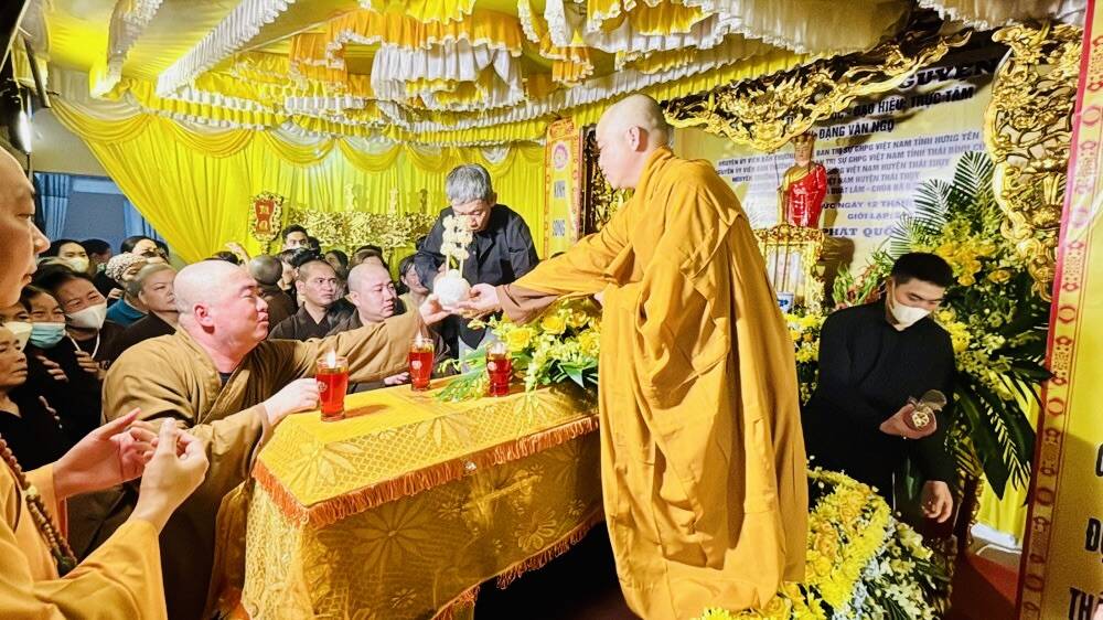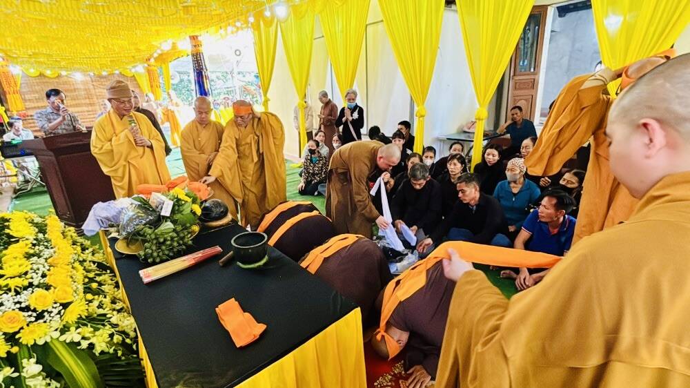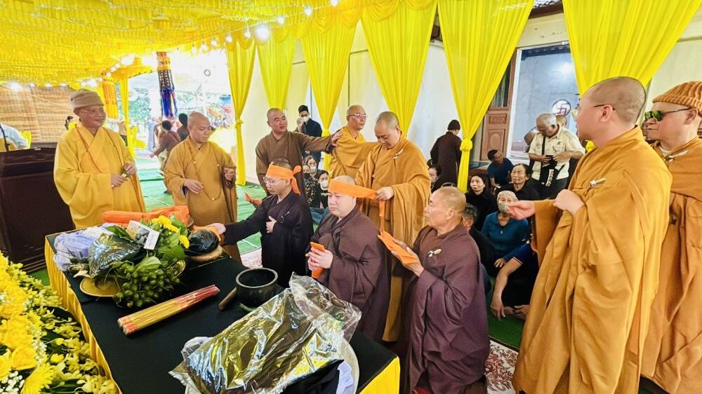 Tiếp đó, Thượng tọa Thích Thanh Vượng đã cử hành nghi thức phát tang – thành phục cho toàn thể môn đồ, pháp quyến, hiếu quyến và nhân dân Phật tử.