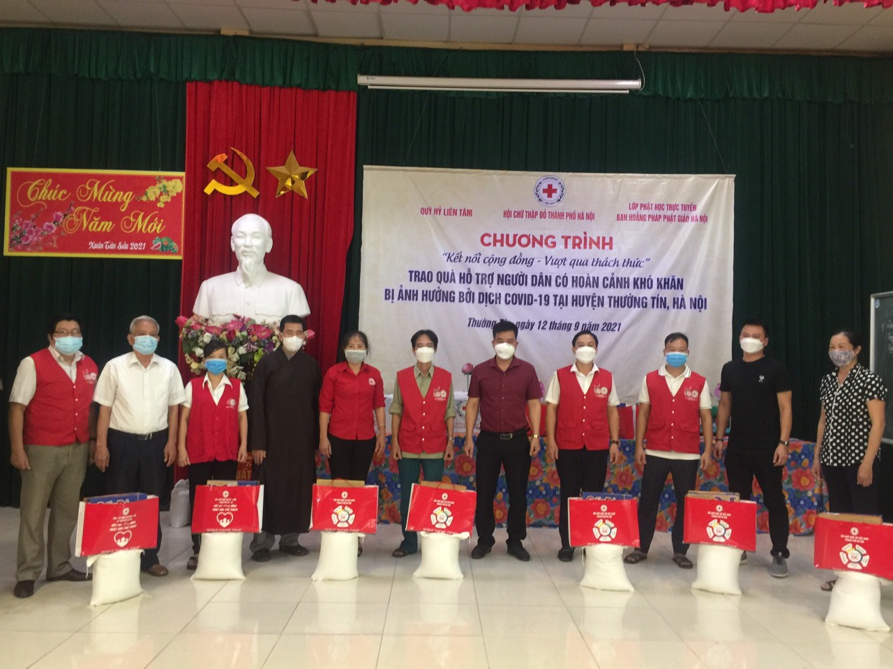 Theo đó, từ ngày 10 -14/9/2021 tiếp nối chuỗi sự kiện từ thiện, đại diện Ban Chủ Nhiệm Lớp Phật Học Trực Tuyến khóa 1 - BHP Phật giáo TP Hà Nội đã được Đại Đức Thích Chánh Thuần - Phó Ban Thư Ký Ban Hoằng Pháp Giáo Hội Phật Giáo Việt Nam Thành phố Hà Nội hướng dẫn phối hợp cùng Quỹ Hỷ Liên Tâm triển khai trao tặng “339 phần quà” trị giá 84.750 triệu đồng và 1 tấn gạo tặng “bếp ăn tình nghĩa của Hội chữ Thập đỏ Hà Nội” nấu cho bệnh nhân bị bệnh hiểm nghèo tại Bệnh Viện Đa Khoa Đống Đa và