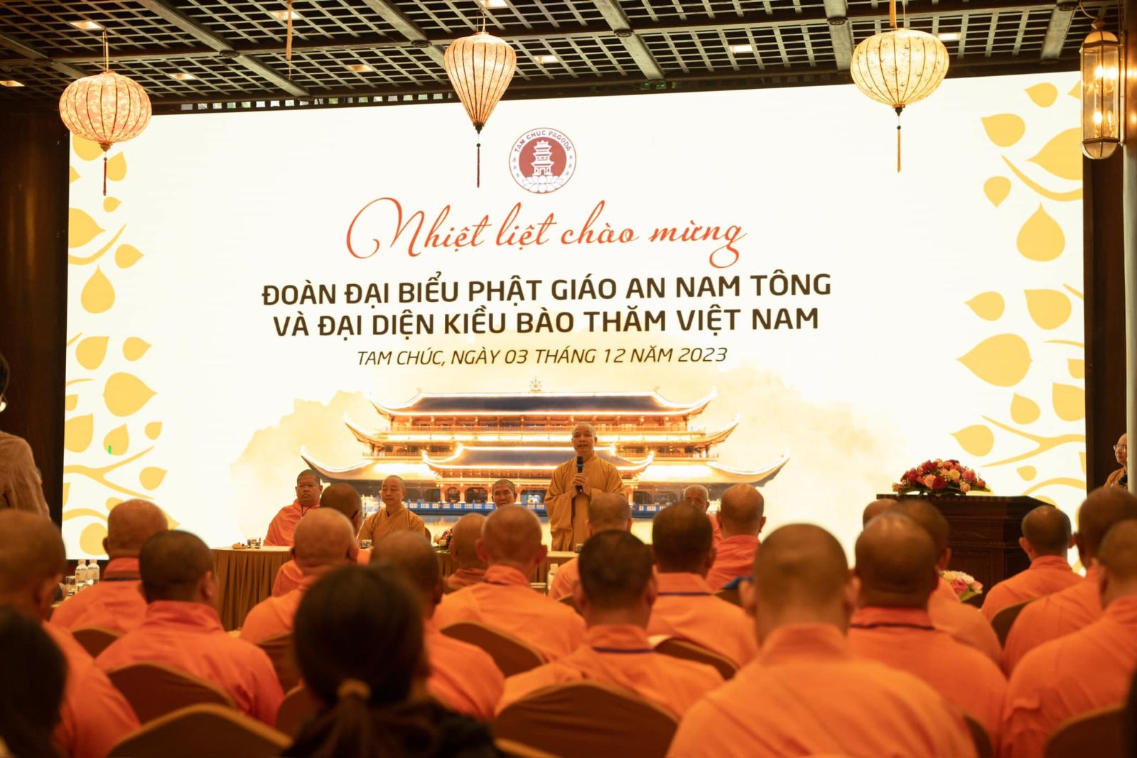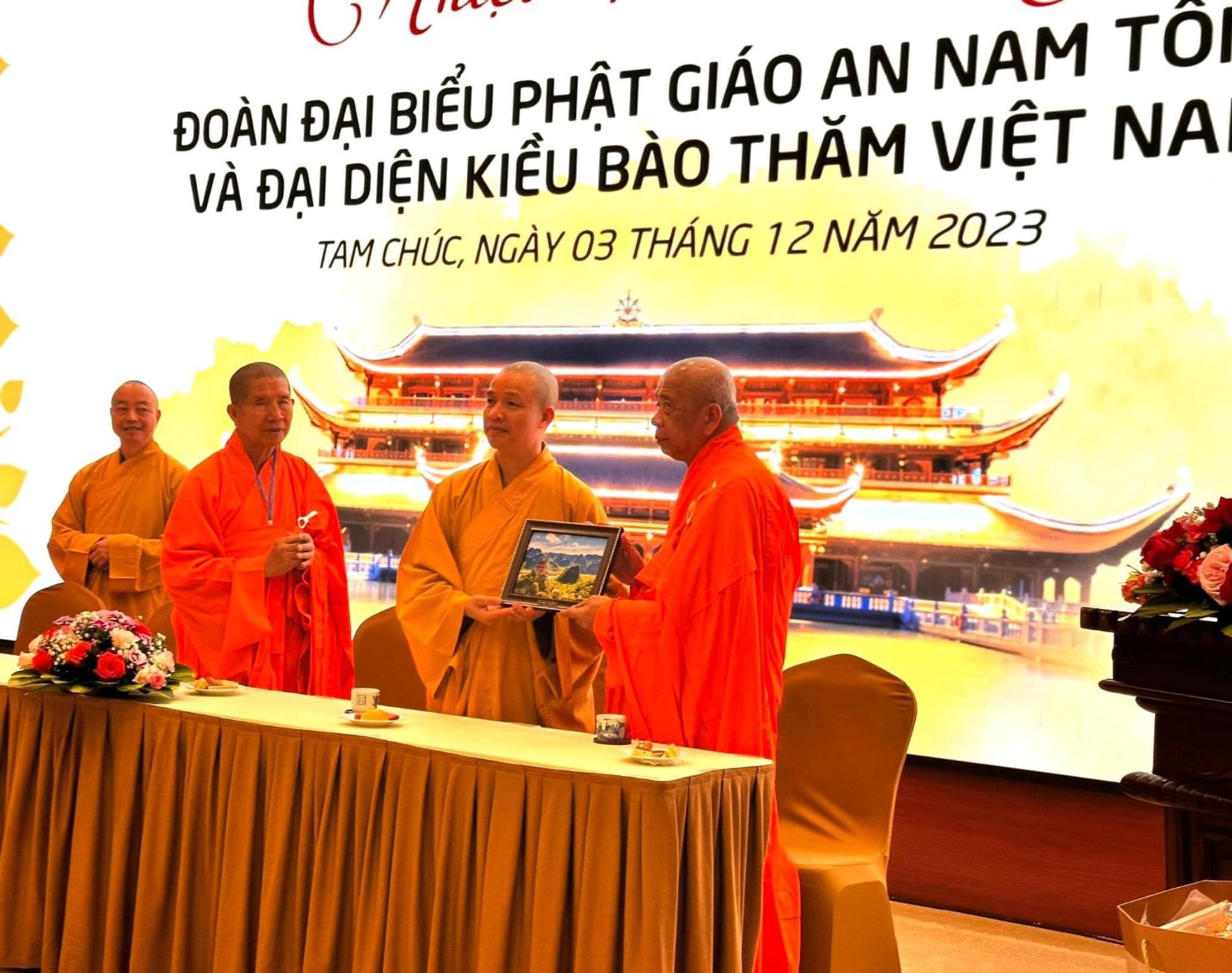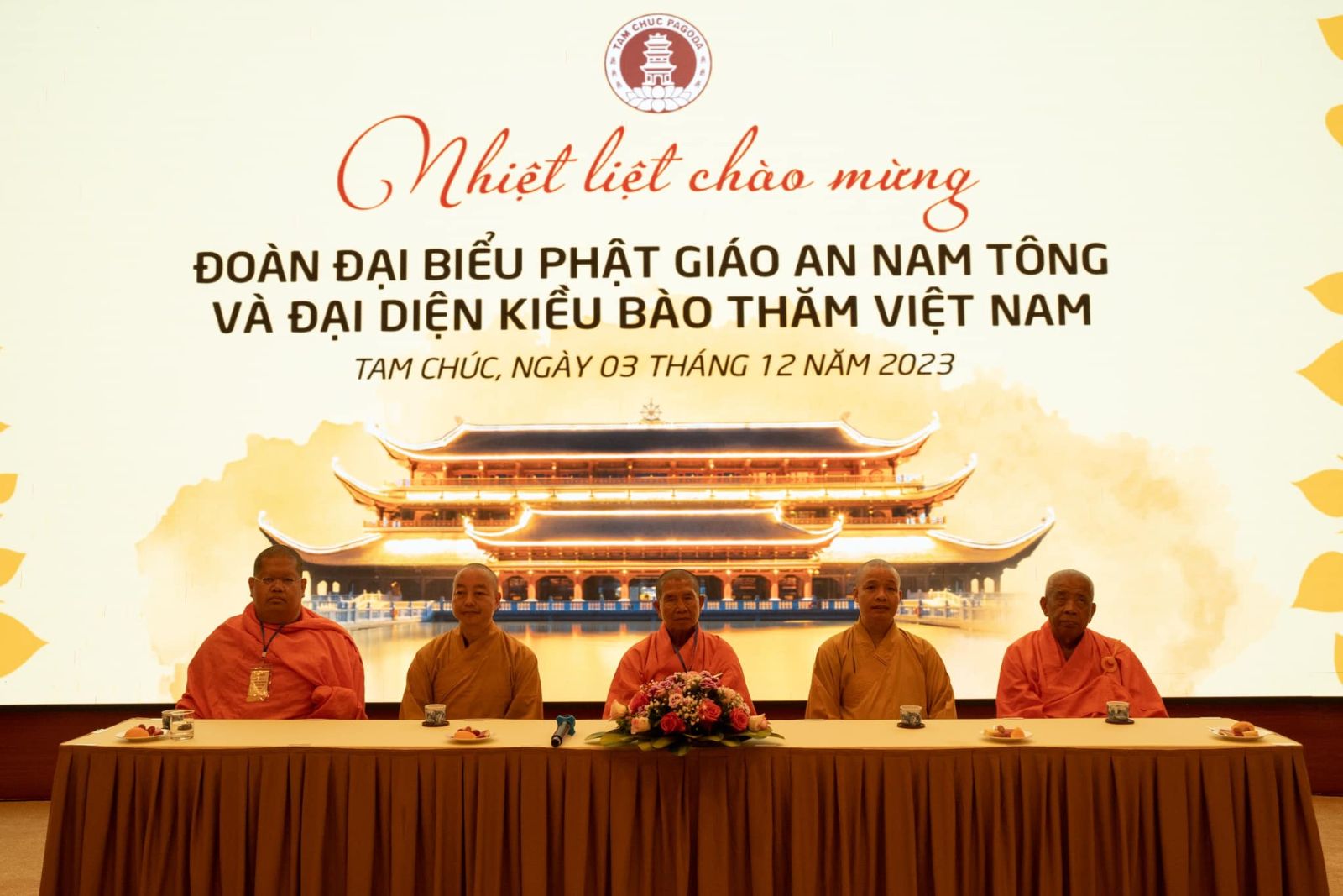 Đoàn đã trân trọng cảm ơn sự đón tiếp chu đáo của Chư Tôn Đức Tăng Ni chùa và chia sẻ về sự phát triển của Phật giáo An Nam Tông tại Thái Lan. Mặc dù không nói được tiếng Việt nhưng hằng ngày Chư Tăng phái An Nam Tông đều hành trì lễ niệm theo nghi thức Việt Nam.