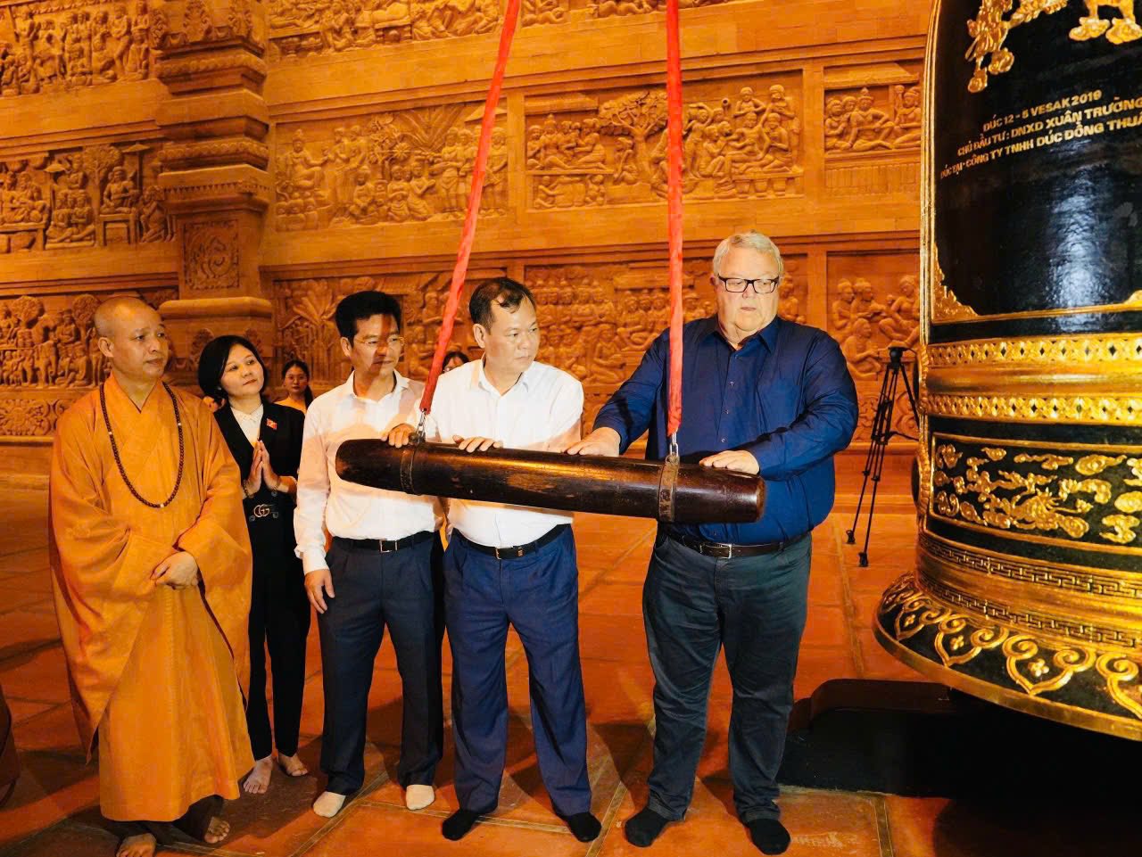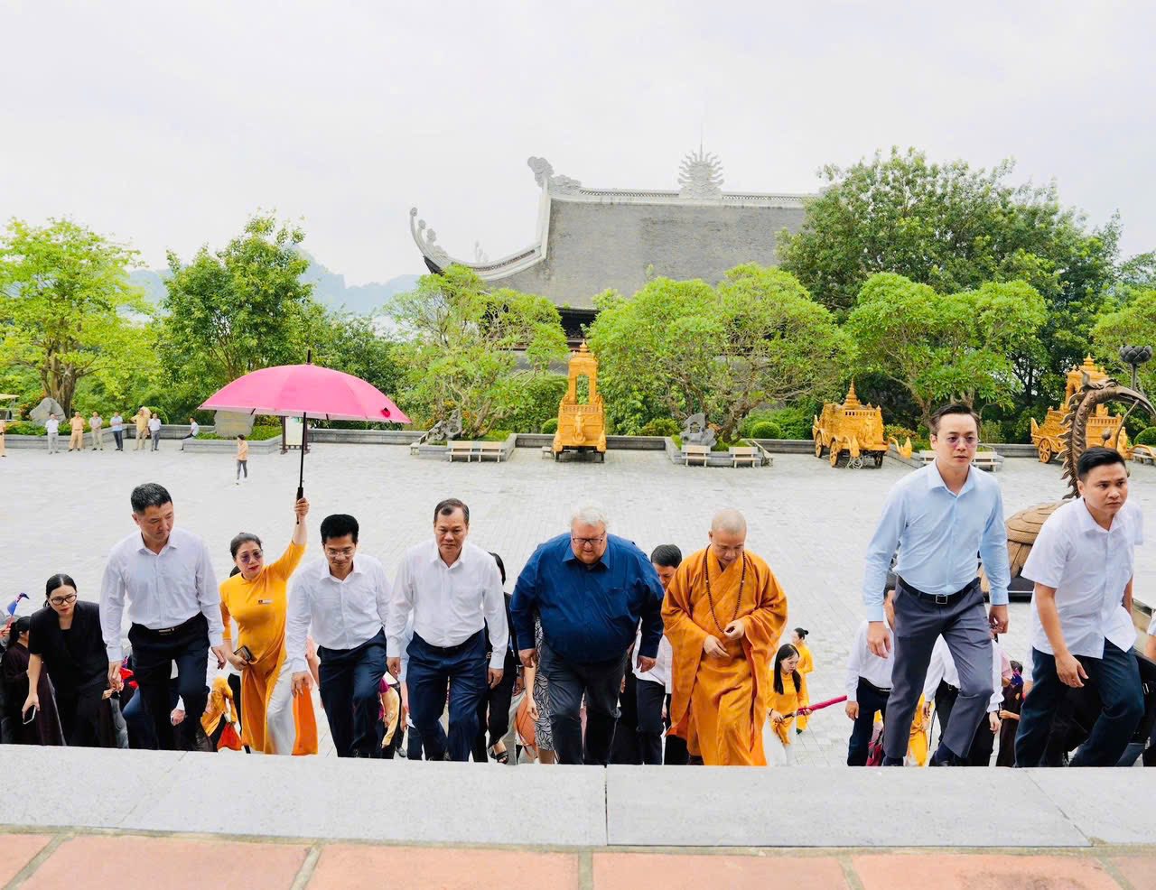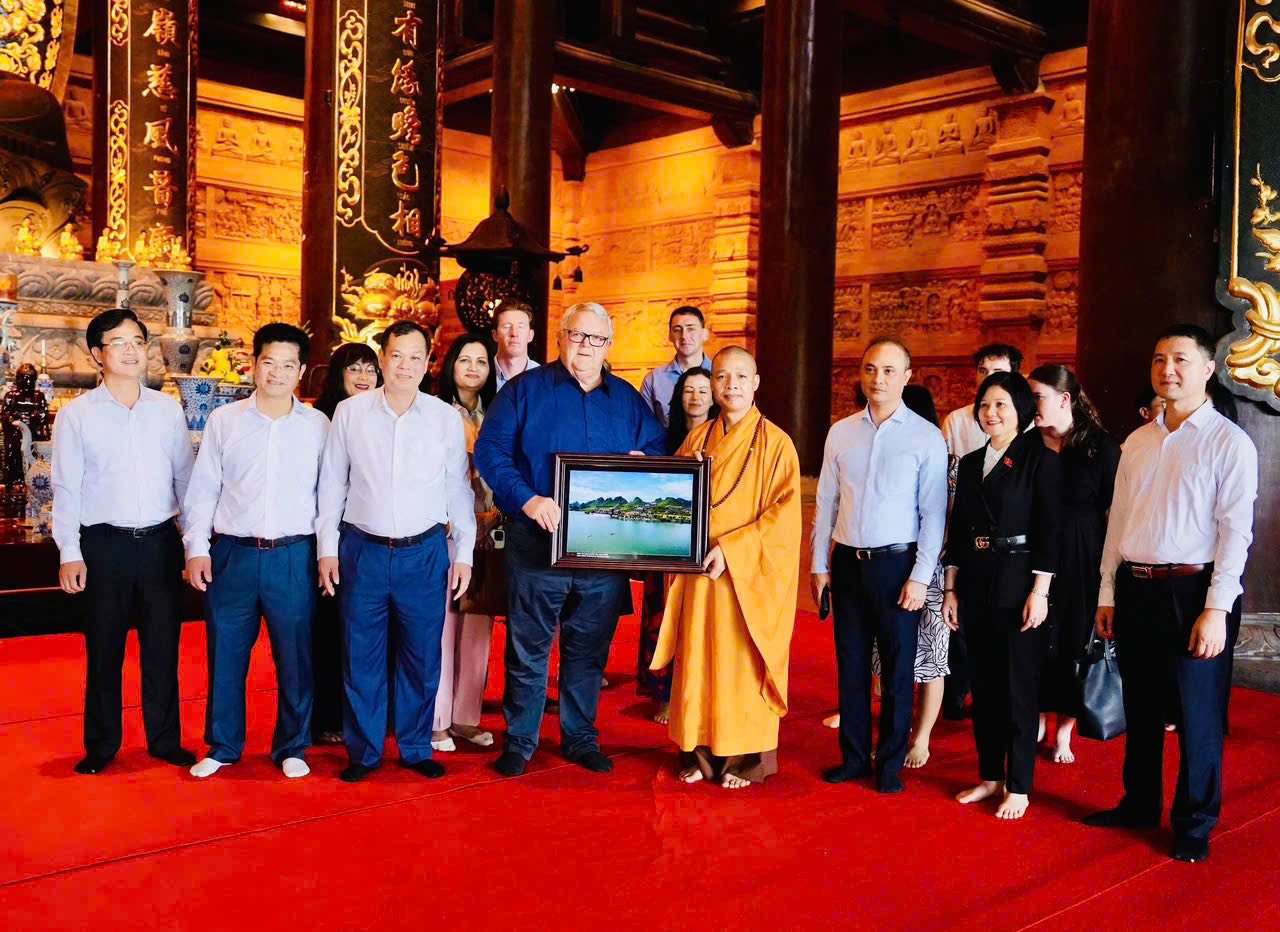 Ông Lê Quốc Chỉnh, Phó Bí thư Tỉnh ủy, Chủ tịch HĐND tỉnh và Ngài Gerry Brownlee, Chủ tịch Quốc hội New Zealand tham quan Điện Tam Thế, chùa Tam Chúc.