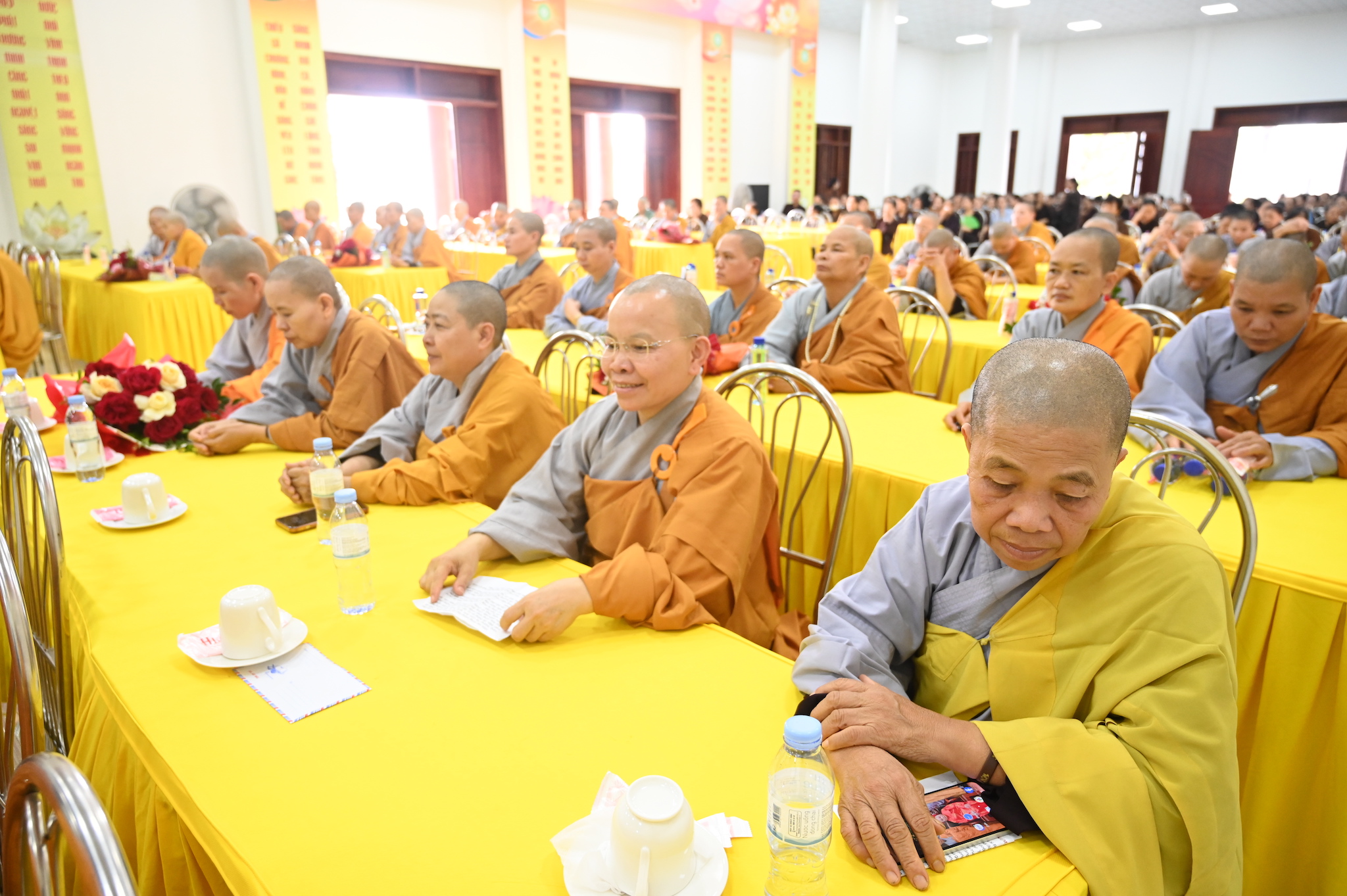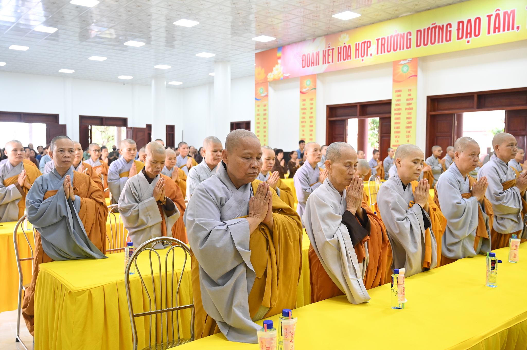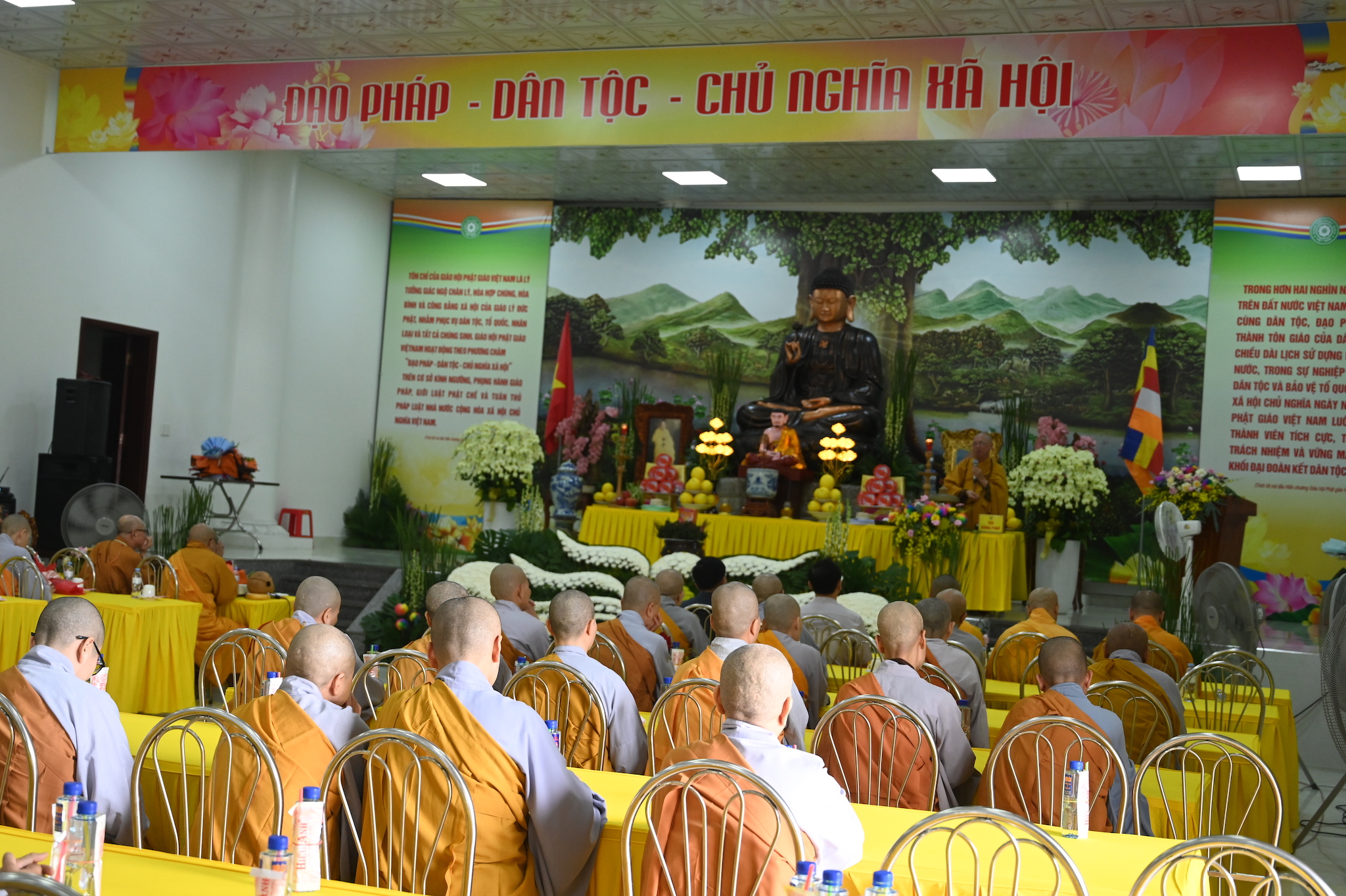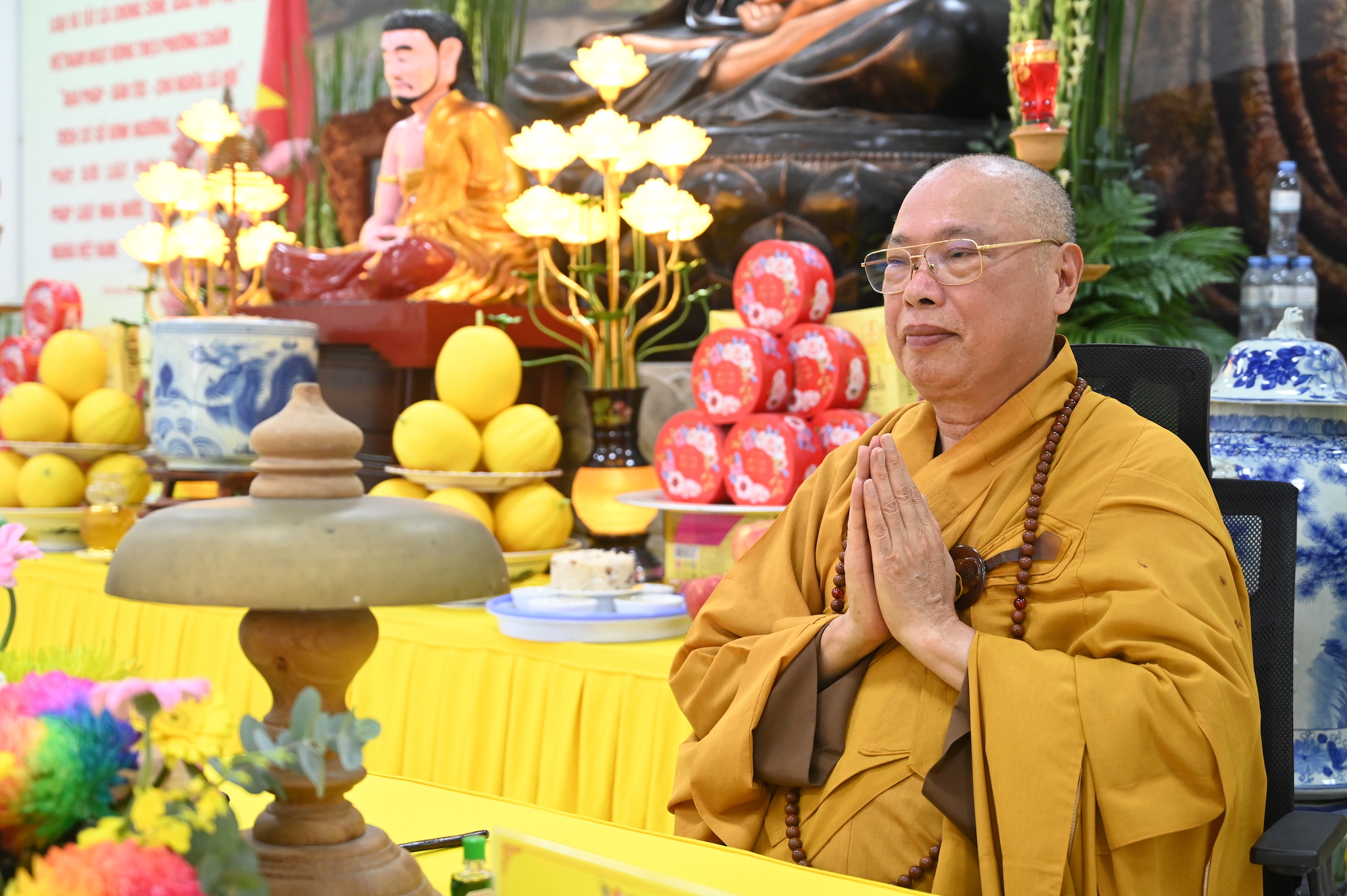 Trước khi vân tập về giảng đường chùa Linh Sơn để tham dự lễ tạ pháp theo nghi thức truyền thống Phật giáo, chư tôn đức hành giả an cư đã quang lâm chính điện chùa Linh Sơn để thực hiện nghi thức cúng Phật, lễ Phật cầu gia bị và lễ tạ Tam Bảo, chuẩn bị kết thúc 3 tháng cấm túc an cư, thúc liễm thân tâm, trau dồi Giới – Định – Tuệ.