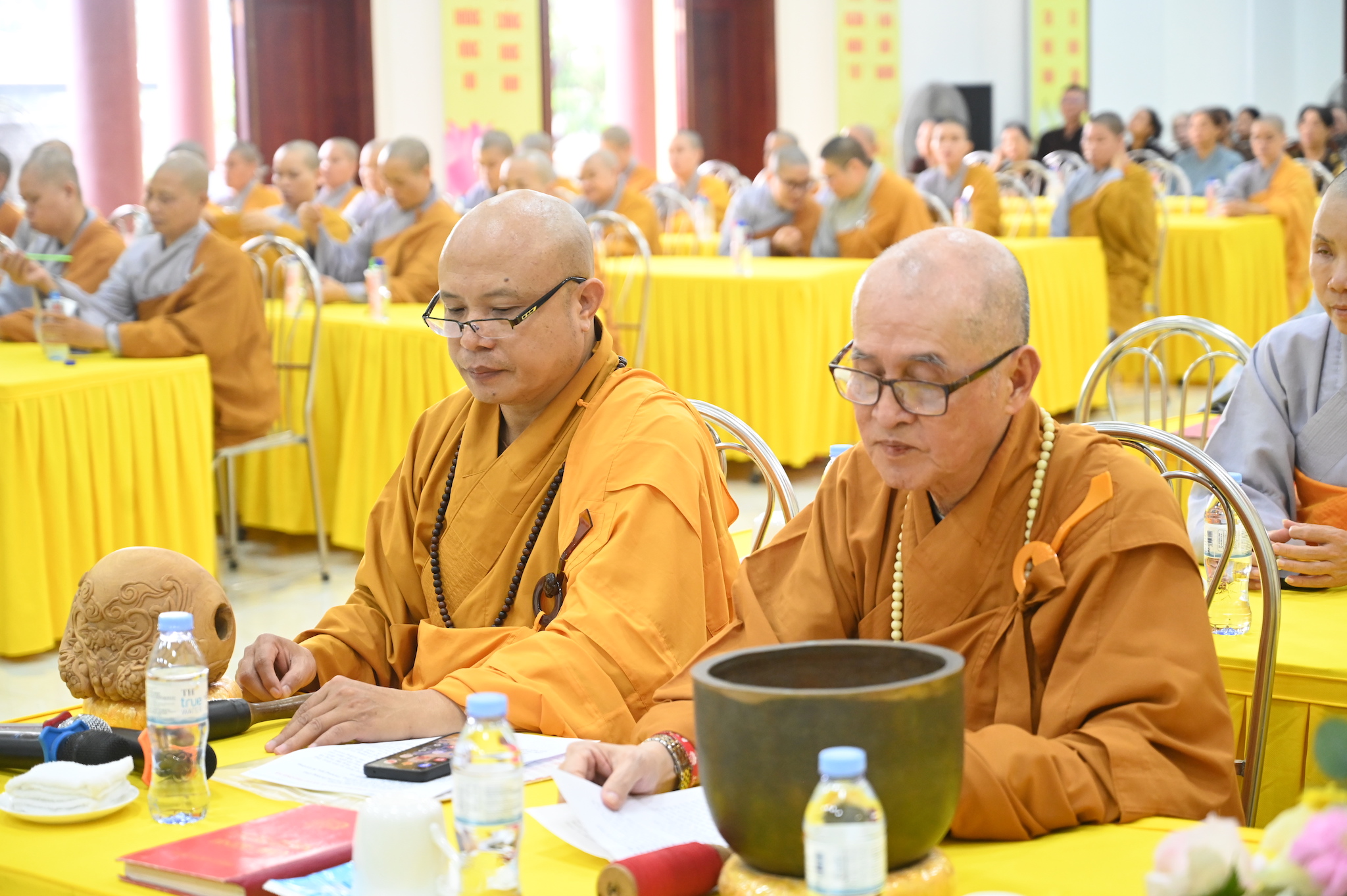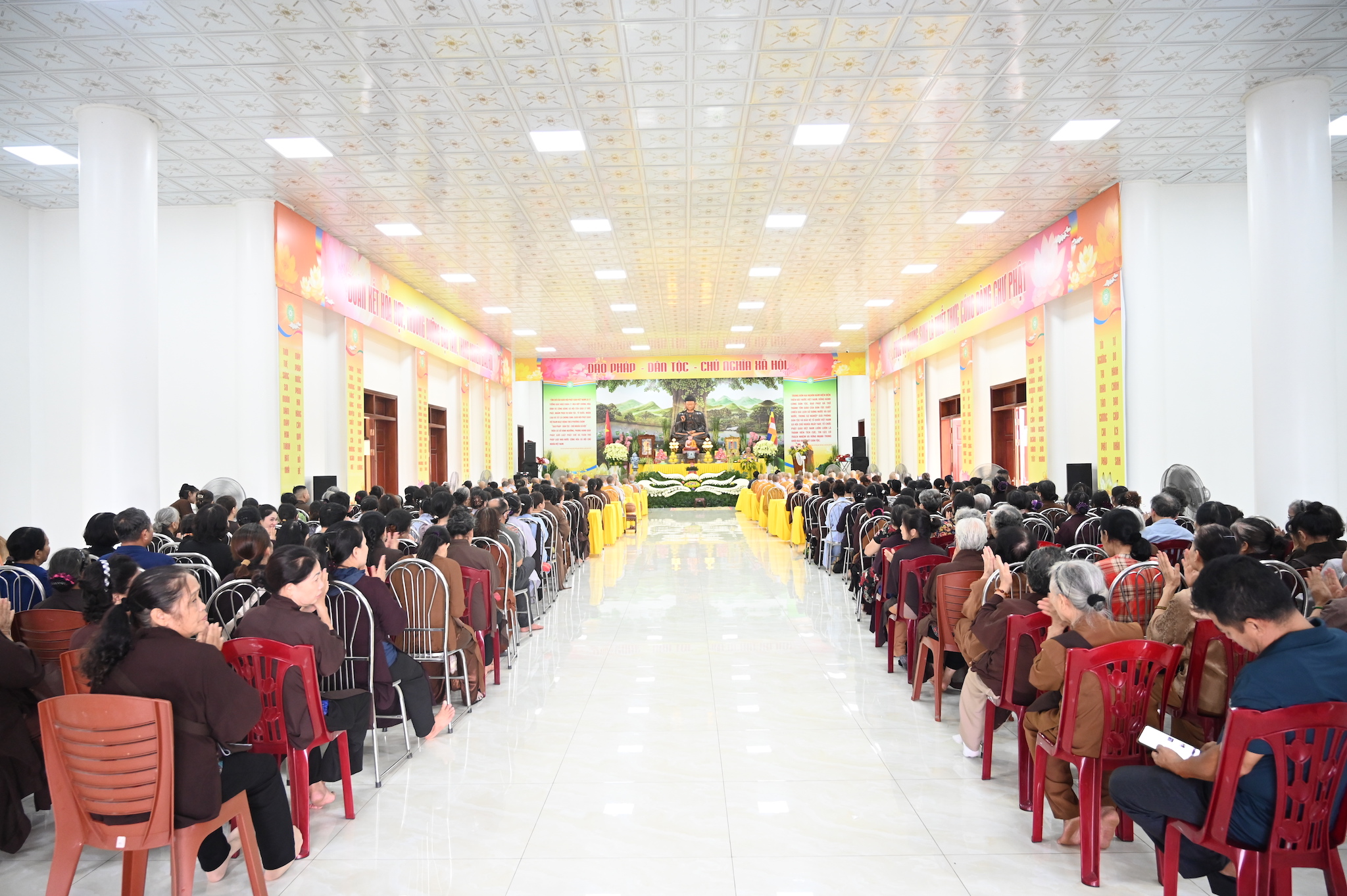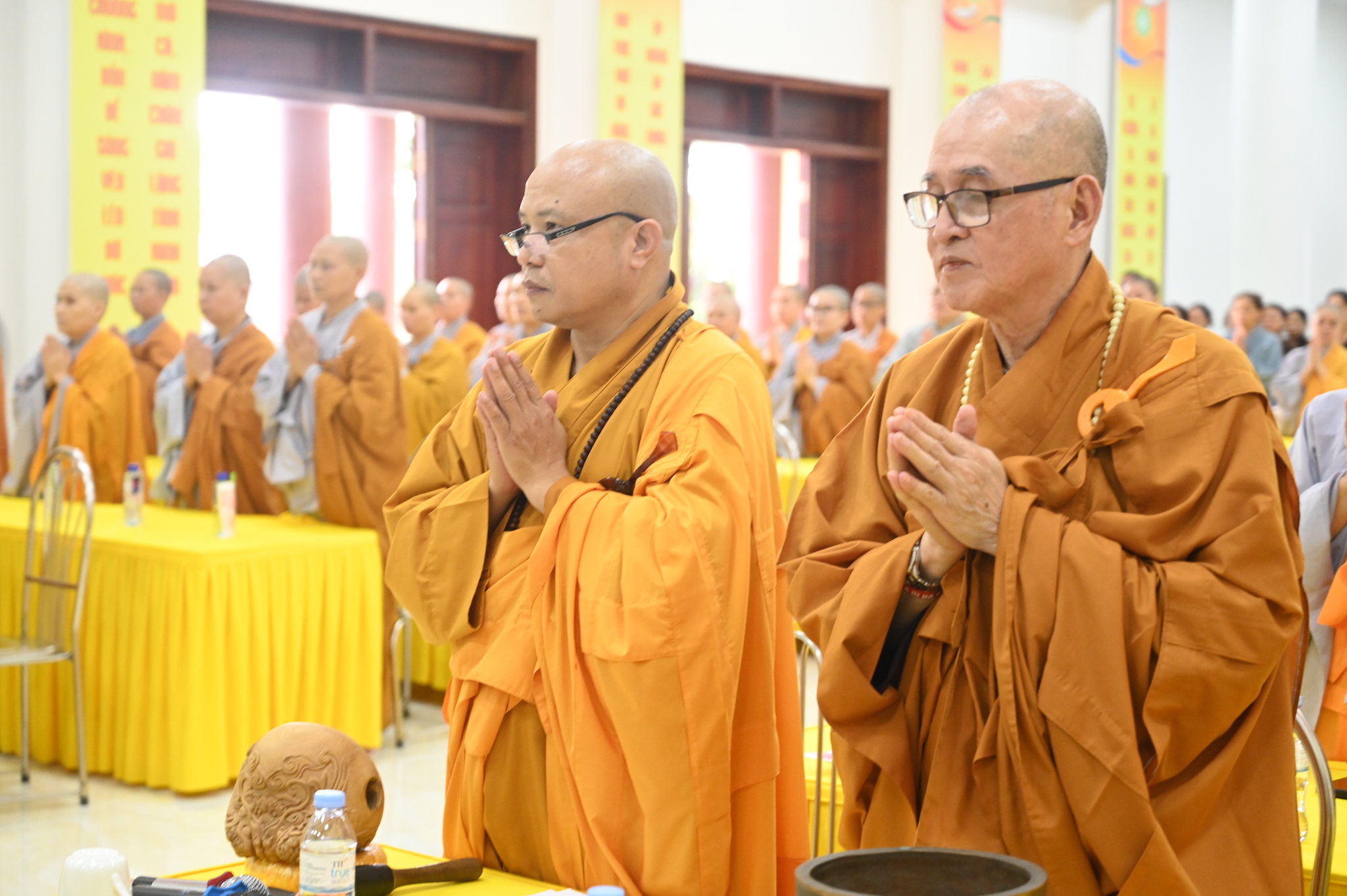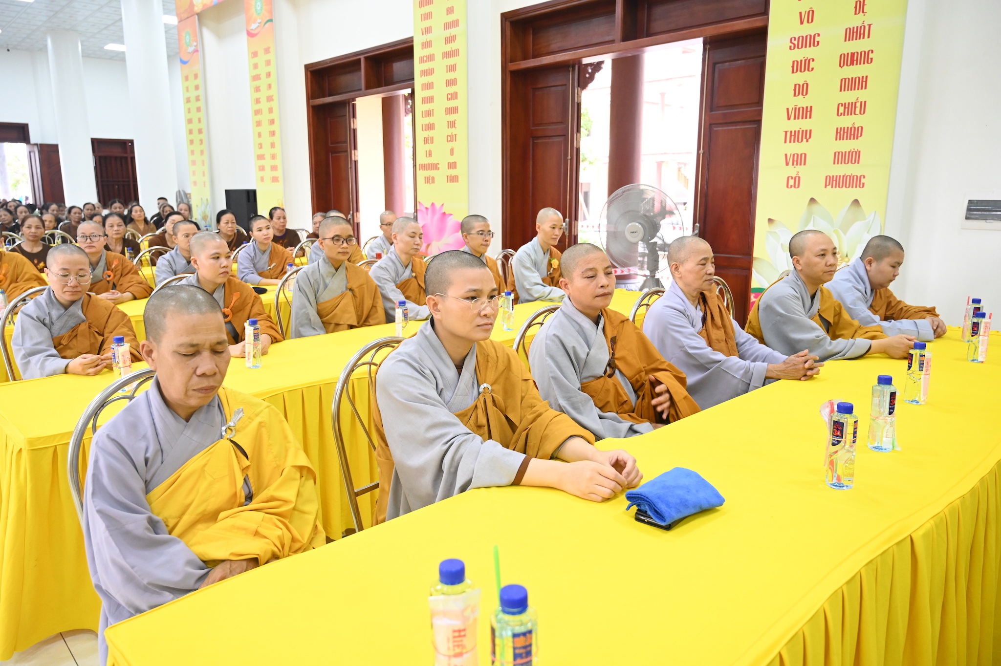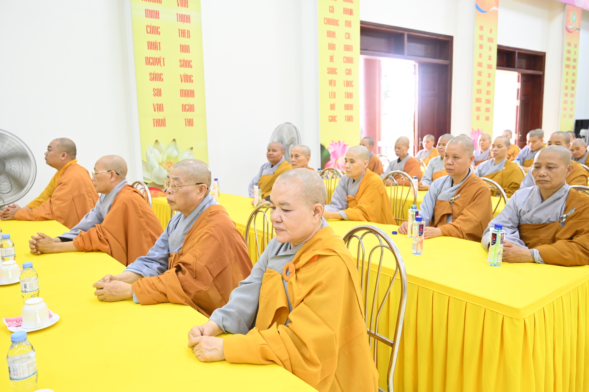Trước khi vân tập về giảng đường chùa Linh Sơn để tham dự lễ tạ pháp theo nghi thức truyền thống Phật giáo, chư tôn đức hành giả an cư đã quang lâm chính điện chùa Linh Sơn để thực hiện nghi thức cúng Phật, lễ Phật cầu gia bị và lễ tạ Tam Bảo, chuẩn bị kết thúc 3 tháng cấm túc an cư, thúc liễm thân tâm, trau dồi Giới – Định – Tuệ.