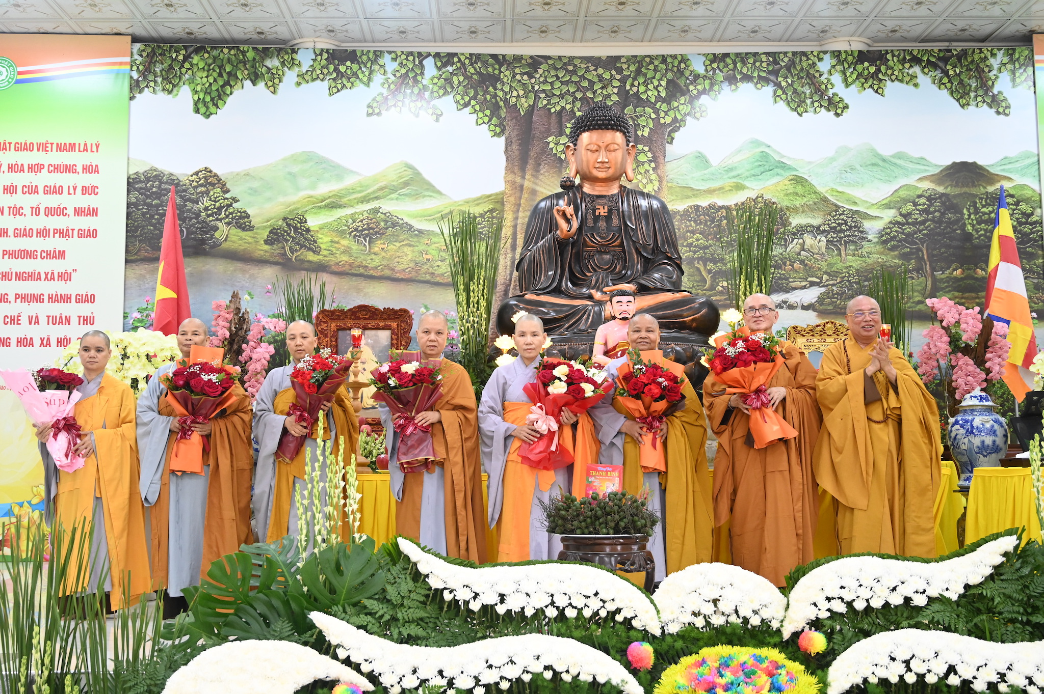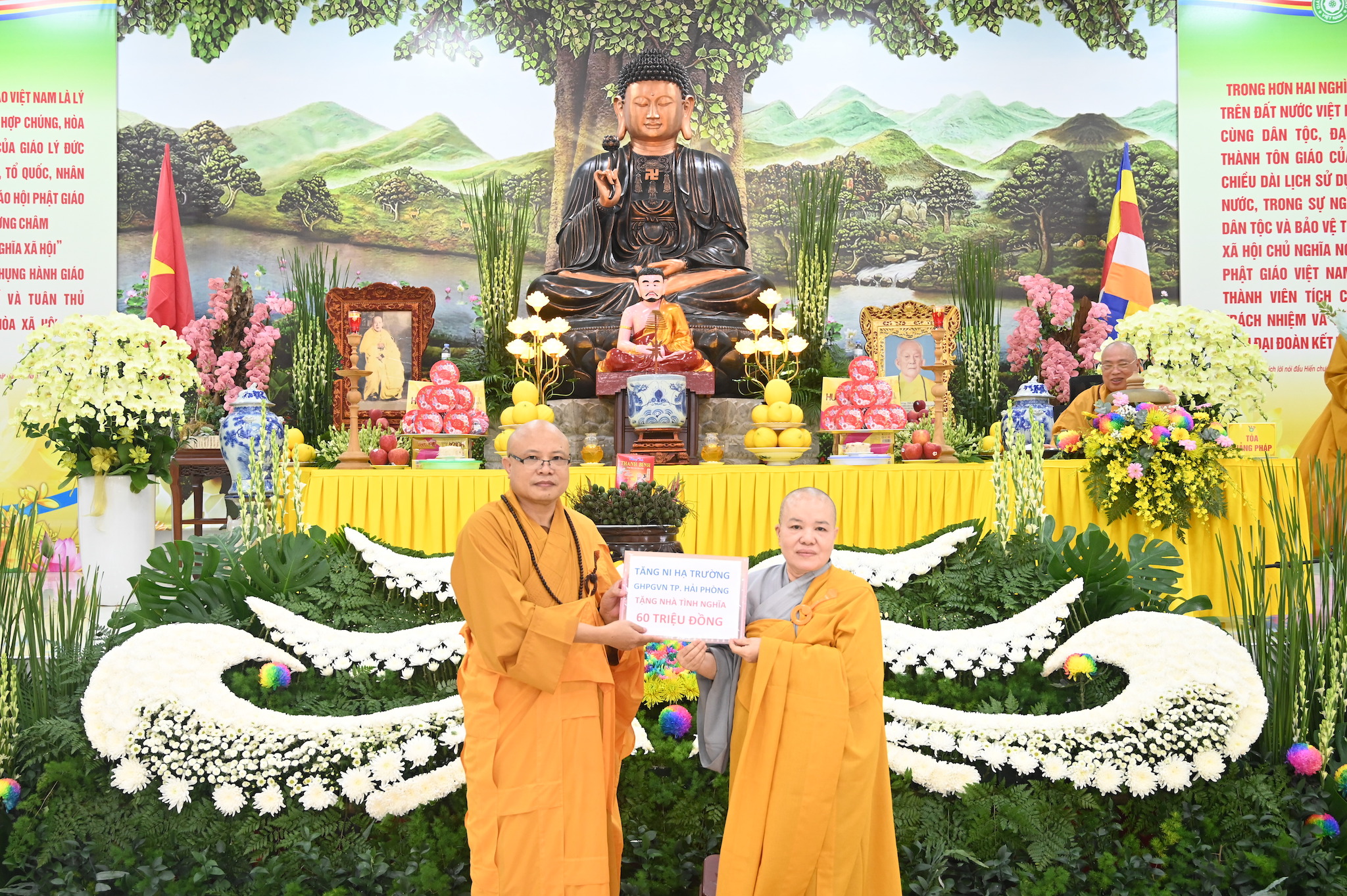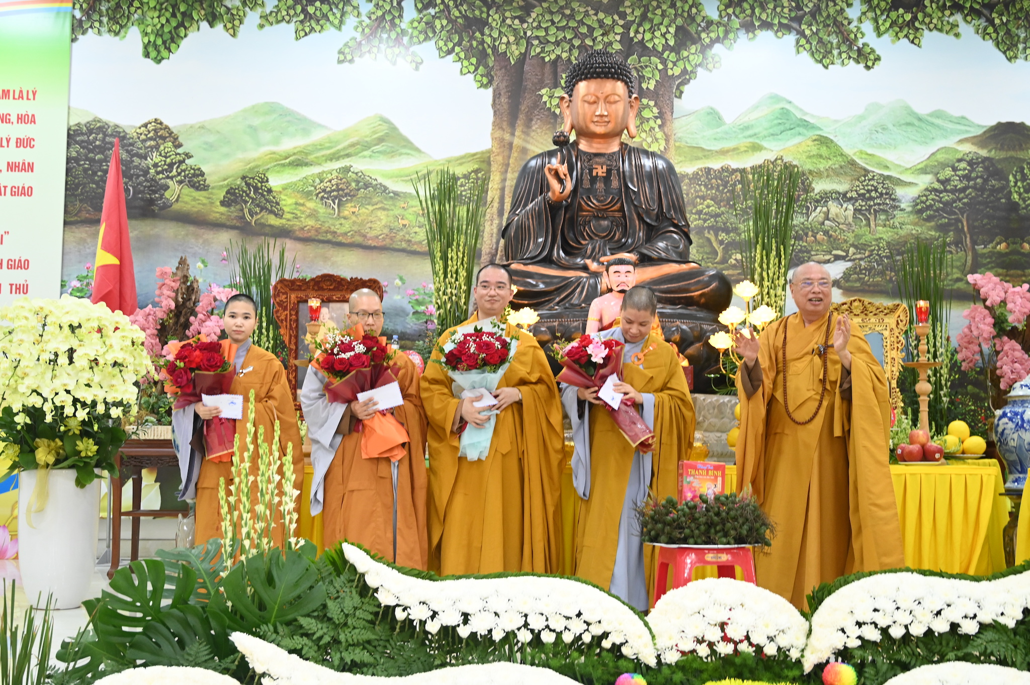 Ban Tổ chức khóa an cư tặng hoa cho các trưởng ban đã hoàn thành xuất sắc nhiệm vụ được giao