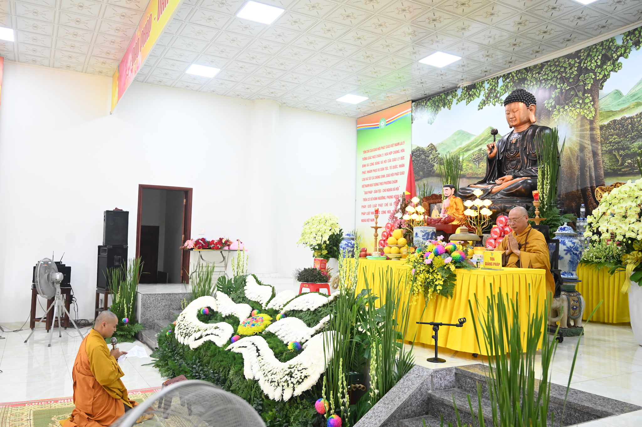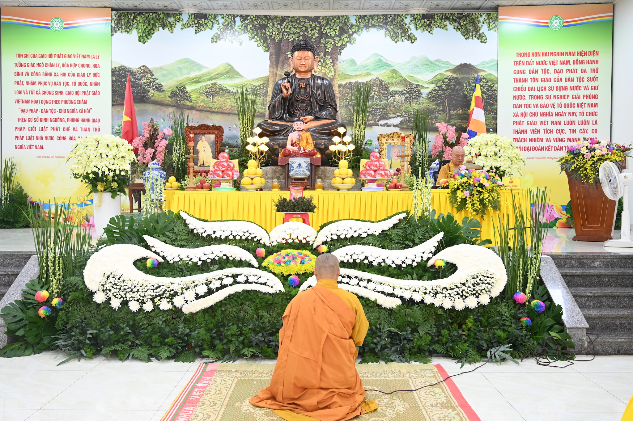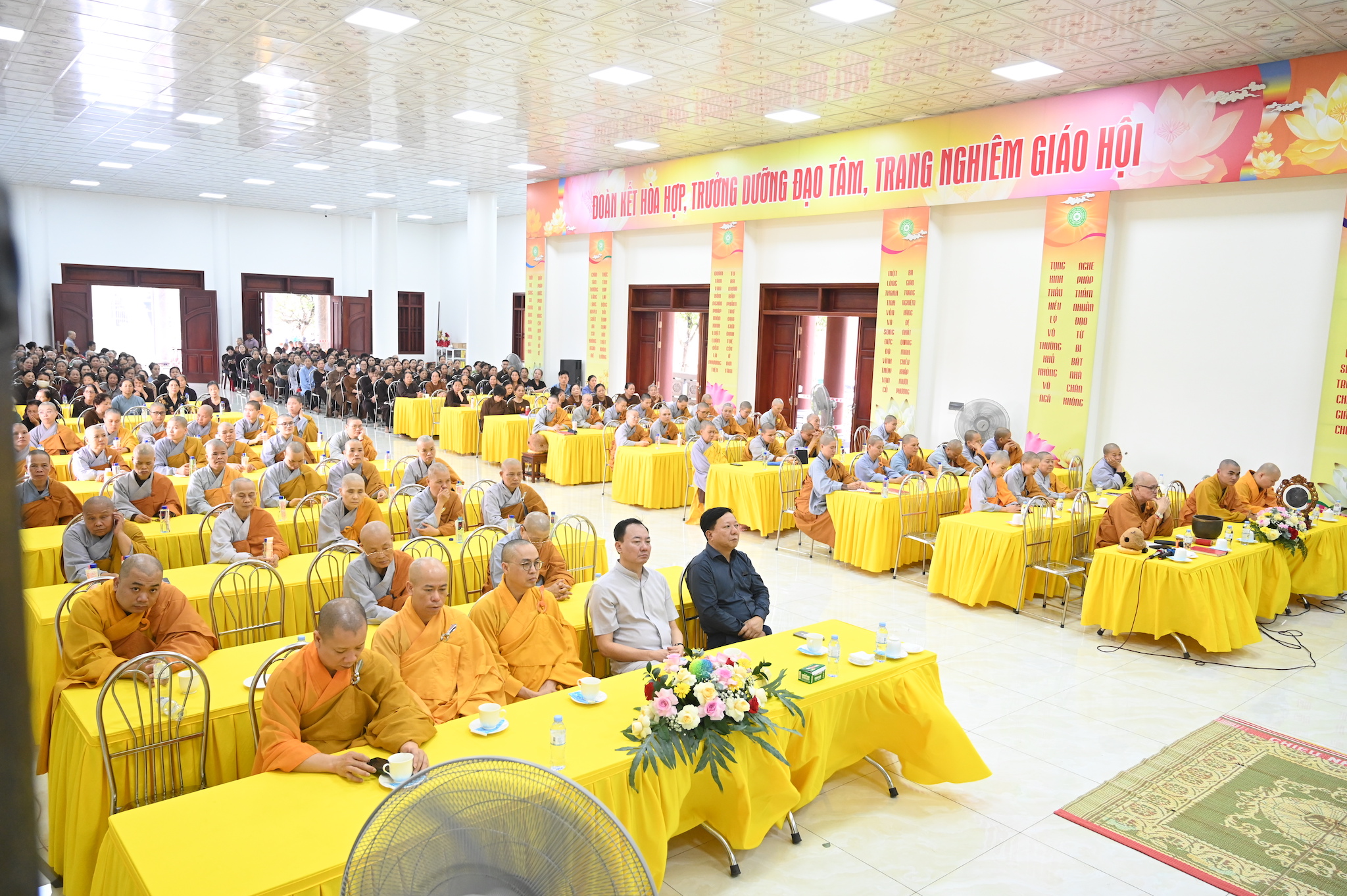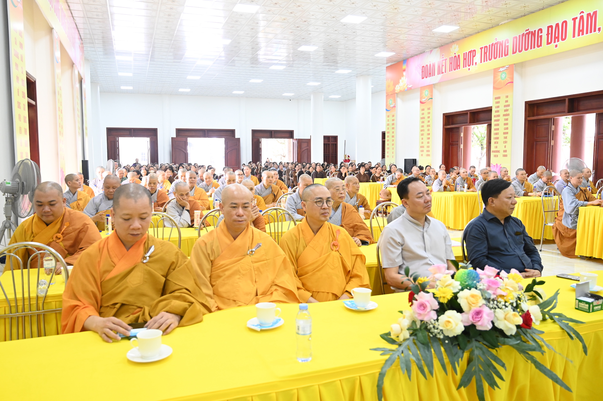 Ban Tổ chức khóa an cư tặng hoa cho các trưởng ban đã hoàn thành xuất sắc nhiệm vụ được giao