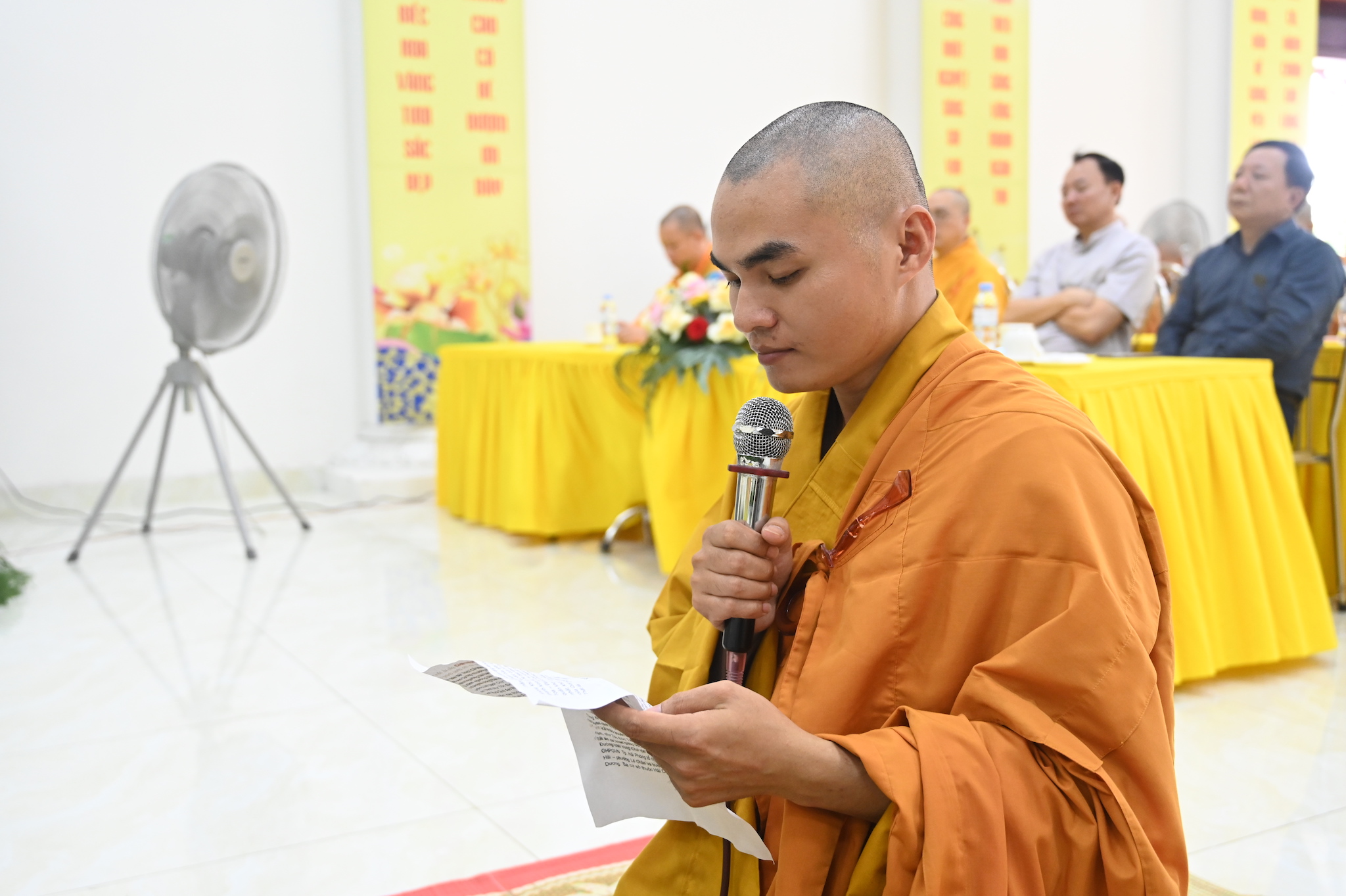 Đại đức Thích Giác Ngạn đại diện chư hành giả an cư dâng lời cảm niệm sau 3 tháng an cư