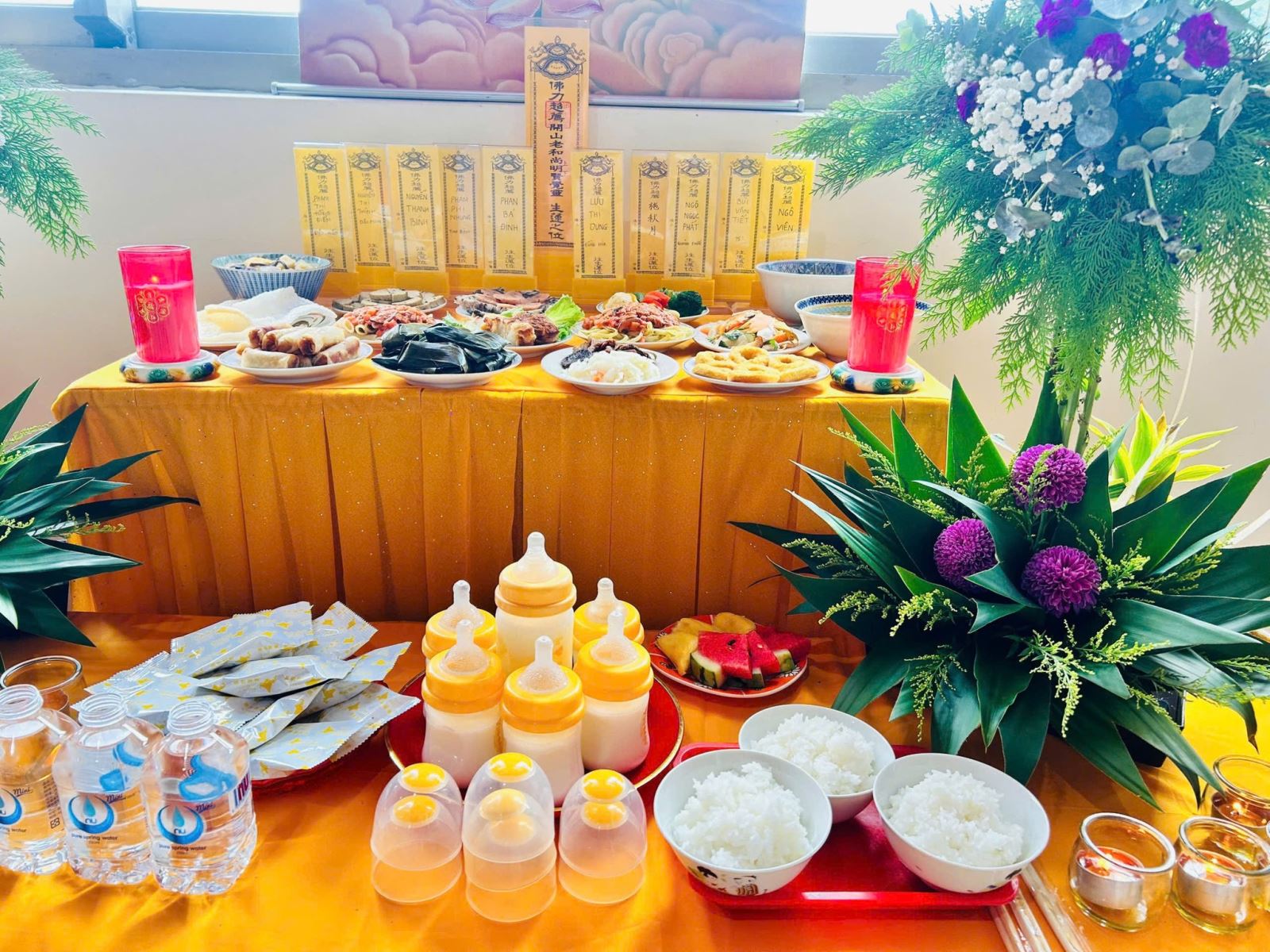 Sau thời tụng kinh, quý Phật tử thiết lễ dâng cúng Trai Tăng và cùng thọ trai.