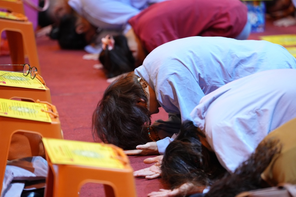 Toàn thể hội chúng nhất tâm hướng Phật, phát nguyện thọ trì Tam quy. Quy y giúp hàng Phật tử xác lập niềm tin kiên cố nơi Tam Bảo, để từ đó không đi lạc lối giữa cuộc đời nhiều chông gai, phát triển đời sống tâm linh, chuyển hóa khổ đau, nuôi dưỡng thiện tâm.