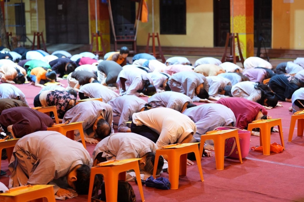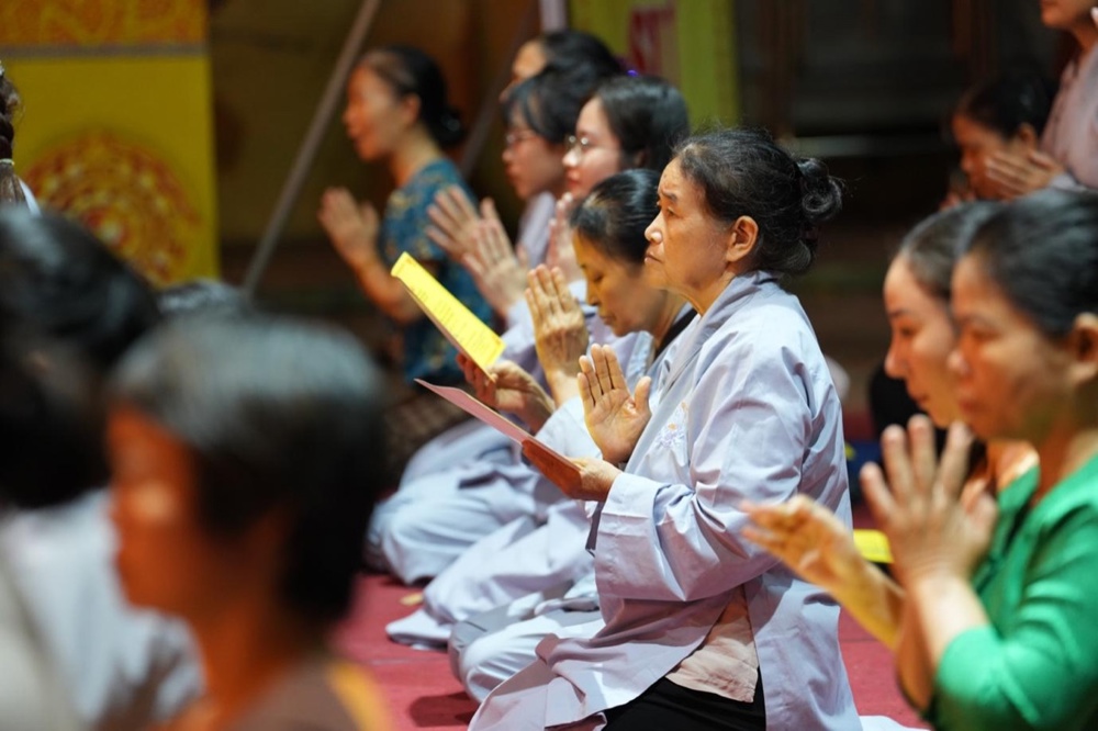 Trong khói hương quyện tỏa nơi chốn già lam, trước Phật đài trang nghiêm, Hòa thượng Thích Bảo Nghiêm – Phó Chủ tịch HĐTS, Trưởng ban Hoằng pháp Trung ương GHPGVN, Trụ trì chùa Bằng đã chủ trì nghi thức truyền giới và truyền Tam quy Ngũ giới cho hàng Phật tử phát tâm quy hướng. Cùng sự chứng minh, gia trì của chư Tăng bản tự, buổi lễ diễn ra xúc động và thấm đượm đạo vị.