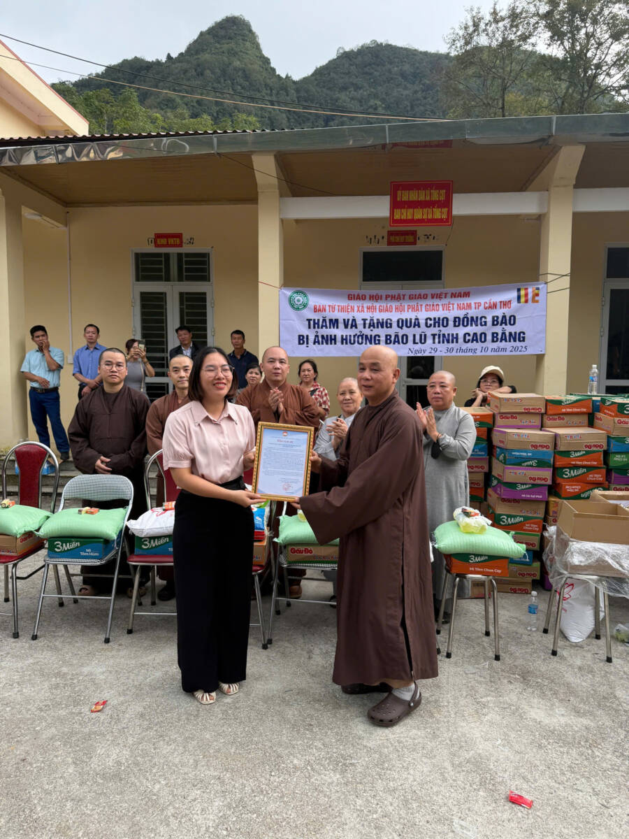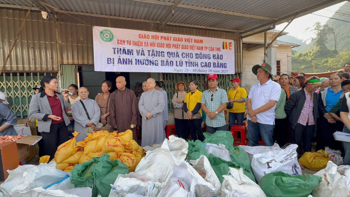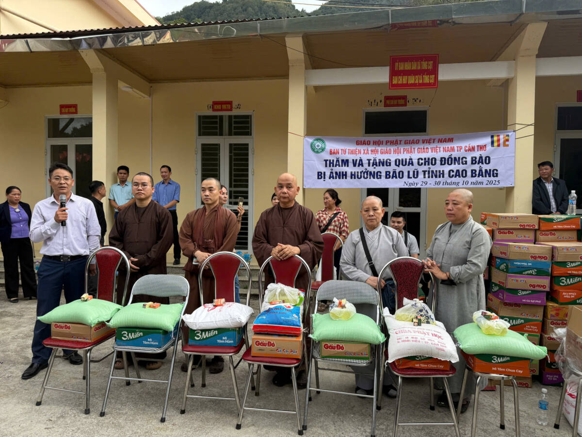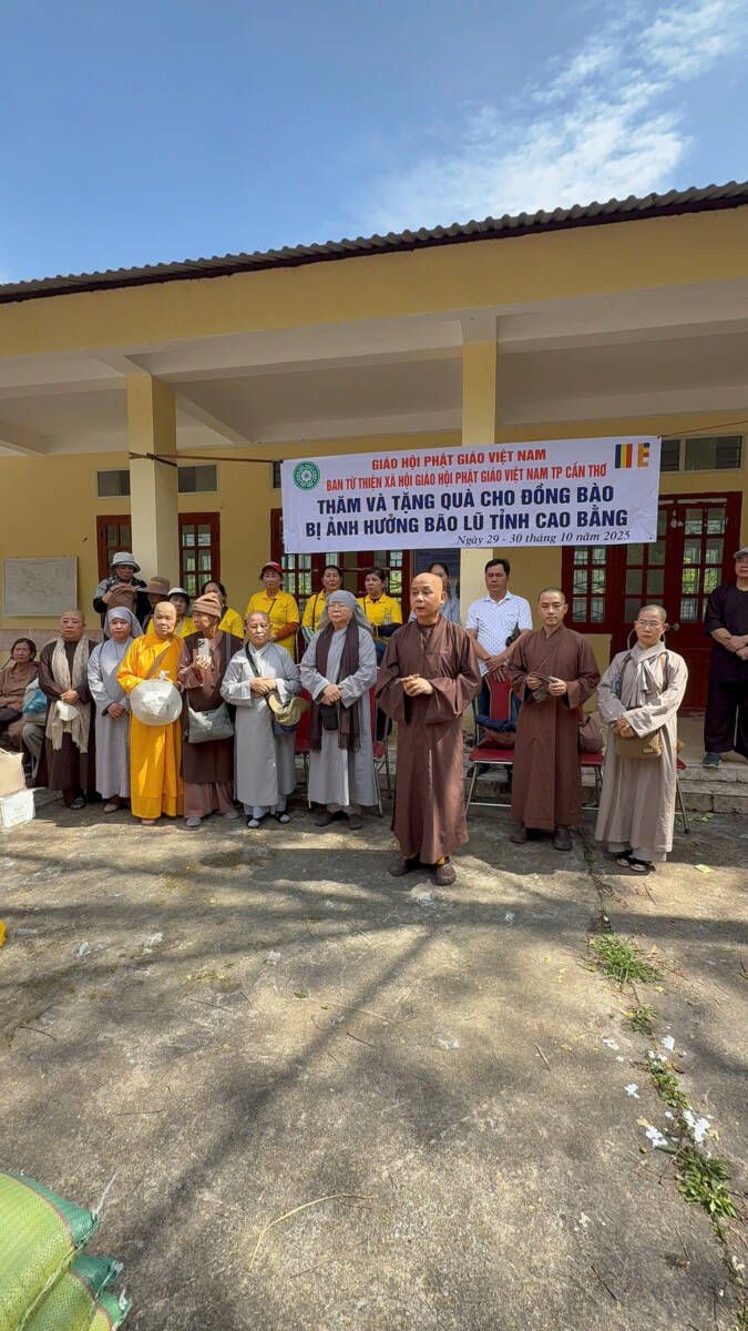 Trong thời gian qua, liên tiếp hai cơn bão số 10 và số 11 đã gây thiệt hại nặng nề tại nhiều huyện của tỉnh Cao Bằng: nhà cửa tốc mái, hoa màu hư hại, đời sống người dân gặp muôn vàn khó khăn. Trước tình hình đó, Ban Từ thiện Xã hội GHPGVN TP. Cần Thơ đã phát động chương trình “Hướng về miền Bắc thương yêu – Cùng nhau vượt qua bão lũ”, với mong muốn hỗ trợ, động viên và chia sẻ phần nào mất mát với đồng bào nơi đây. Đoàn do Thượng tọa Thích Minh Thông – Phó Trưởng BTS kiêm Trưởng Ban TTXH GHPG TPCT làm trưởng đoàn; NS Thích Nữ Chơn Như – Phó BTS Kiêm Phó thường trực Phân Ban Ni Giới GHPG TPCT;.NS Thích Nữ Diệu Quý – Chánh thư ký Ban TTXH GHPG TPCT cùng chư Tôn đức Tăng Ni, quý Phật tử và các mạnh thường quân đồng hành. Chuyến đi có sự phối hợp chặt chẽ với Ban Trị sự GHPGVN tỉnh Cao Bằng và chính quyền các xã Thang Long, xã Cần Yên, xã Tổng Cọt thuộc tỉnh Cao Bằng những địa phương chịu ảnh hưởng nặng nề nhất sau bão.