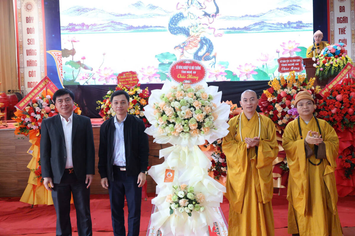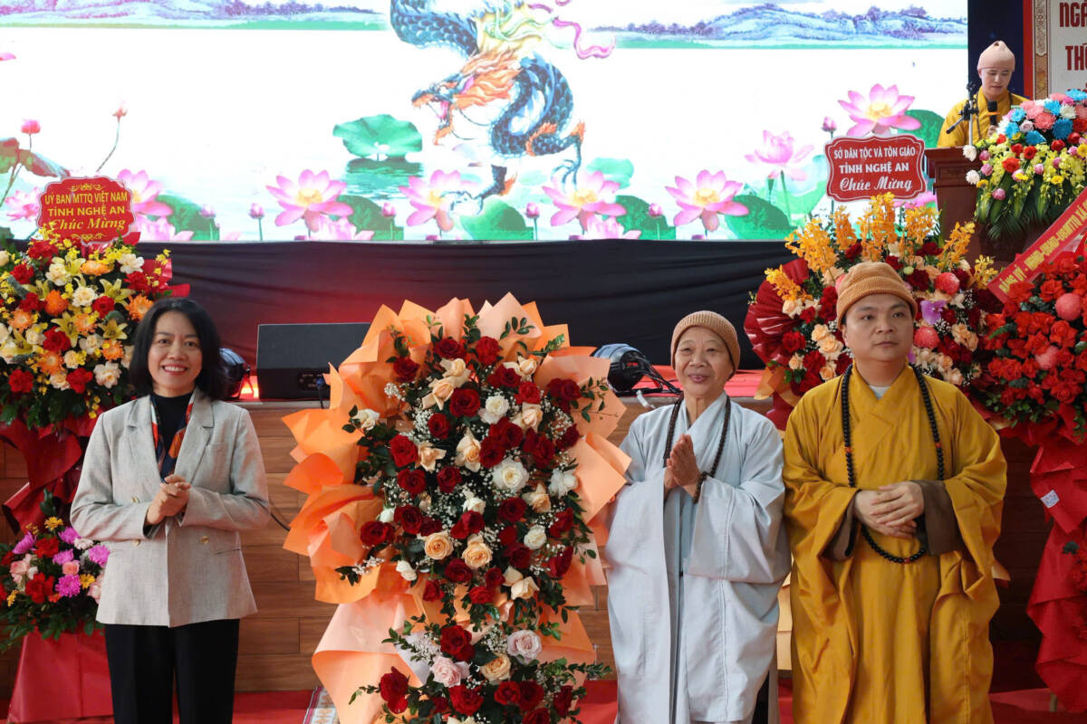 Tại buổi lễ, ông Phan Sỹ Cường – Phó Chủ tịch Ủy ban Mặt trận Tổ quốc Việt Nam tỉnh Nghệ An ghi nhận và biểu dương những đóng góp của Giáo hội Phật giáo tỉnh Nghệ An trong thời gian qua, đồng thời bày tỏ mong muốn Giáo hội tiếp tục phát huy tinh thần đoàn kết, trưởng dưỡng đạo tâm, trang nghiêm Giáo hội, hoàn thành tốt vai trò và sứ mệnh của mình trong đời sống xã hội.