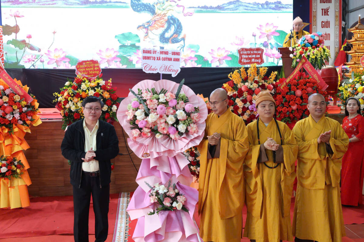 Về phía Giáo hội có: Ni sư Thích Diệu Nhẫn – UV HĐTS, Phó Trưởng Ban Trị sự GHPGVN tỉnh Nghệ An; Đại đức Thích Minh Hải – Chánh Văn phòng Tỉnh hội, Trưởng Ban Văn hóa GHPGVN tỉnh; Đại đức Thích Tâm Thành – Chánh Thư ký Ban Trị sự GHPGVN tỉnh; cùng Chư Tôn đức Tăng, Ni, Phật tử và đông đảo bà con nhân dân thập phương.