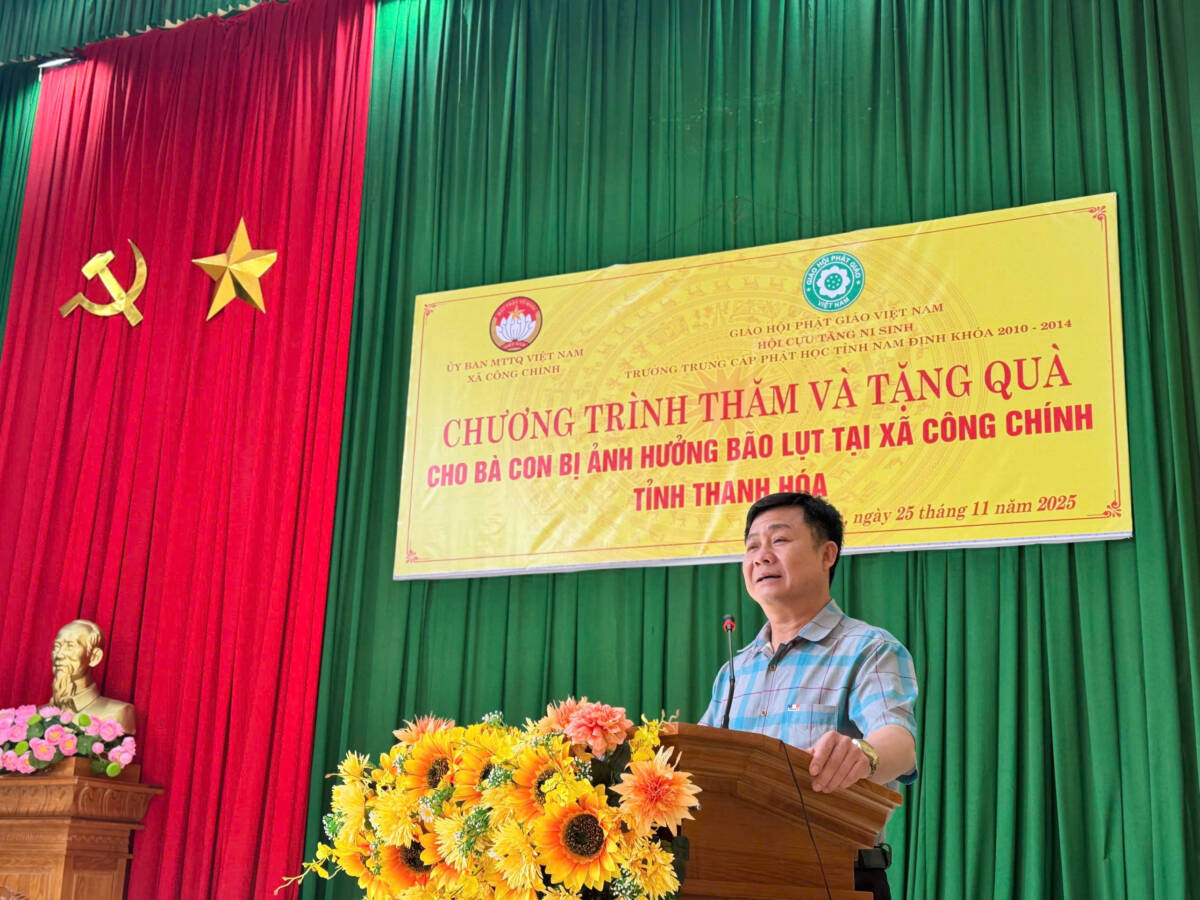 Đại diện chính quyền địa phương, ông Thiệu Khắc Yên – Chủ tịch Ủy ban nhân dân xã Công Chính – đã bày tỏ lòng tri ân sâu sắc trước sự quan tâm của Giáo hội và chư Tăng Ni. Ông nhấn mạnh rằng sự chung tay của Phật giáo không chỉ mang giá trị vật chất mà còn khích lệ tinh thần nhân dân vượt qua khó khăn, ổn định cuộc sống sau bão lũ.