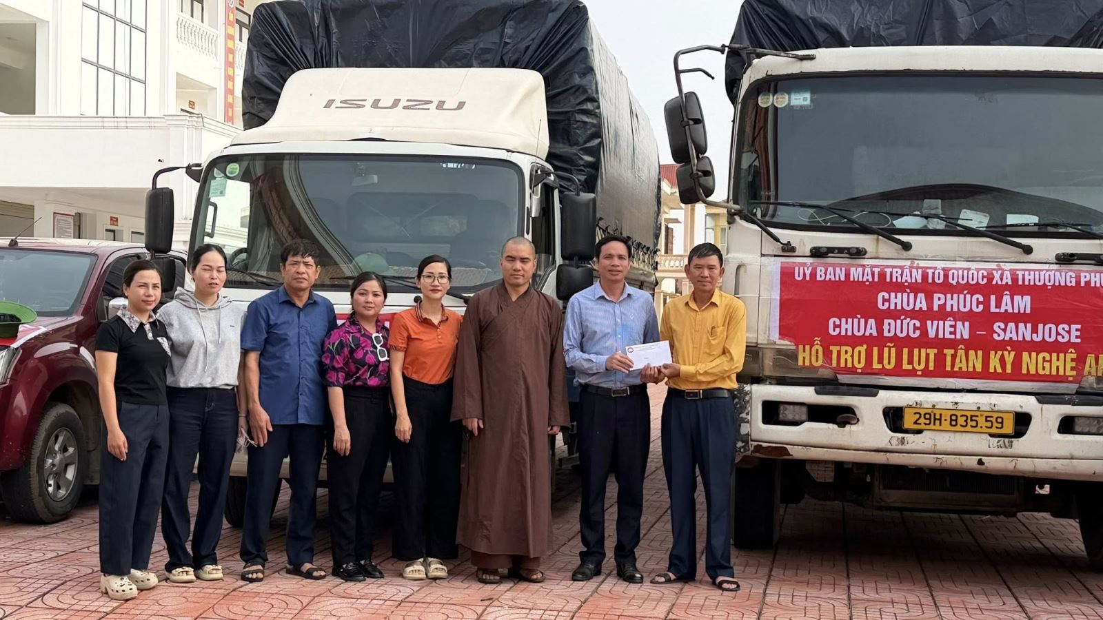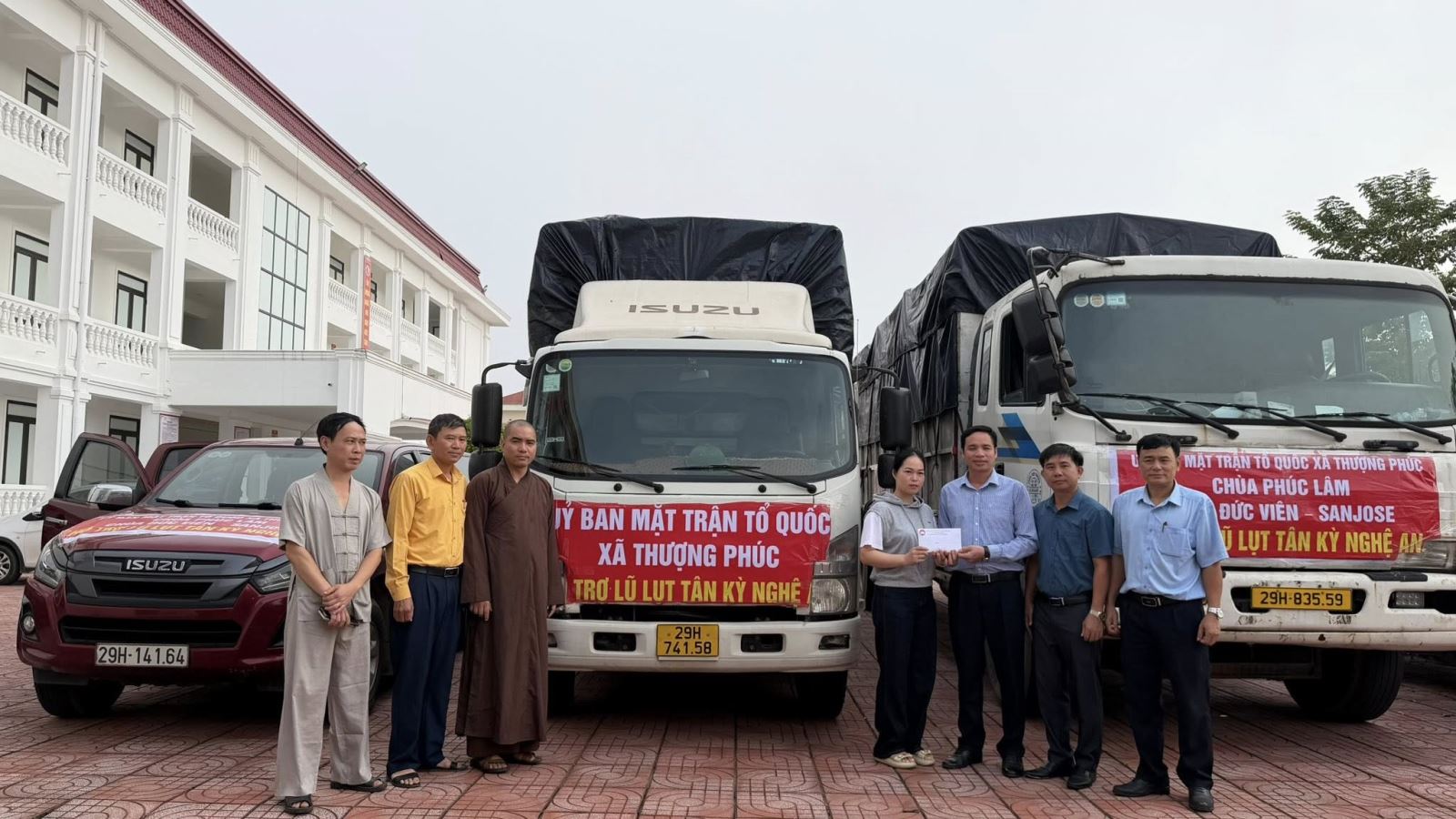Trong đêm ngày 2/10/2025, khi nhiều người còn chìm trong giấc ngủ, tại chùa Phúc Lâm (xã Thượng Phúc, huyện Thường Tín, Hà Nội), thầy trò và Phật tử đã cùng Ủy ban Mặt trận Tổ quốc xã Thượng Phúc khẩn trương chuẩn bị chuyến xe nghĩa tình hướng về vùng lũ Nghệ An.