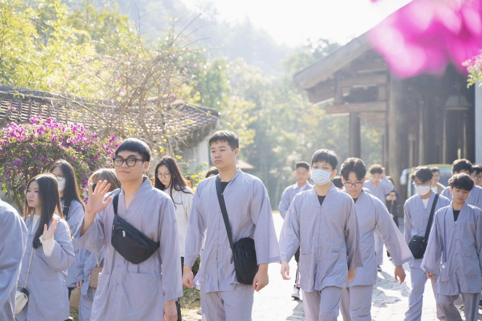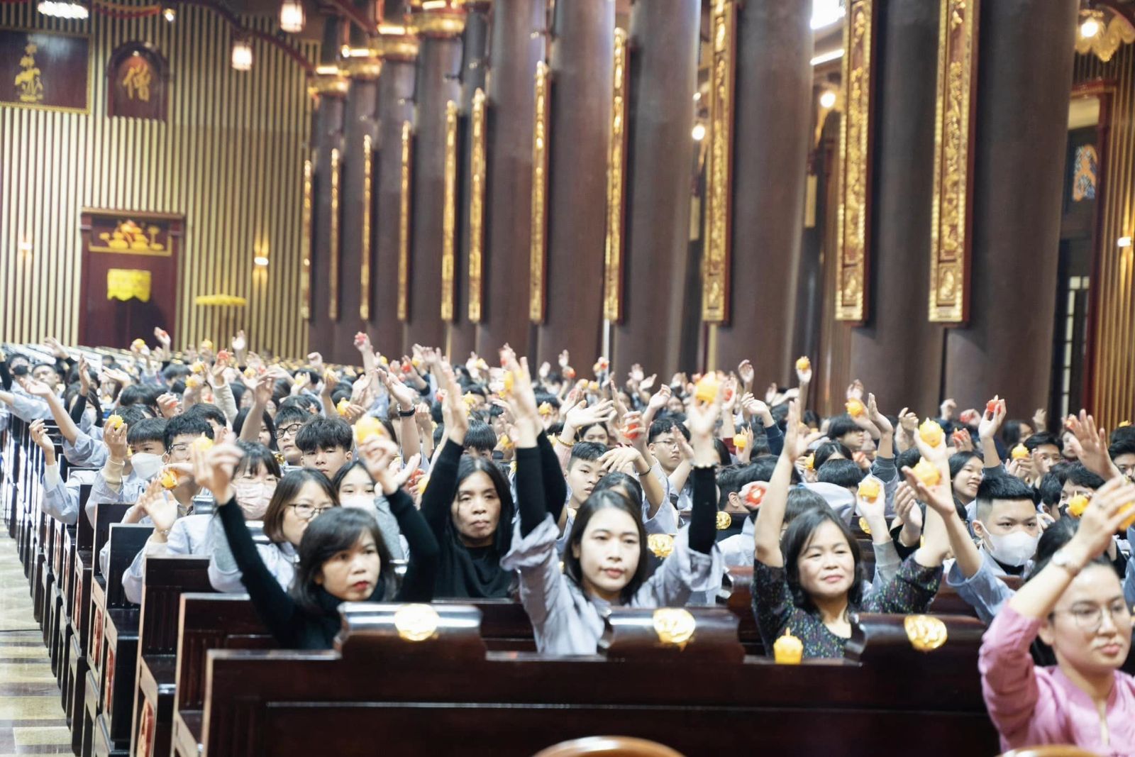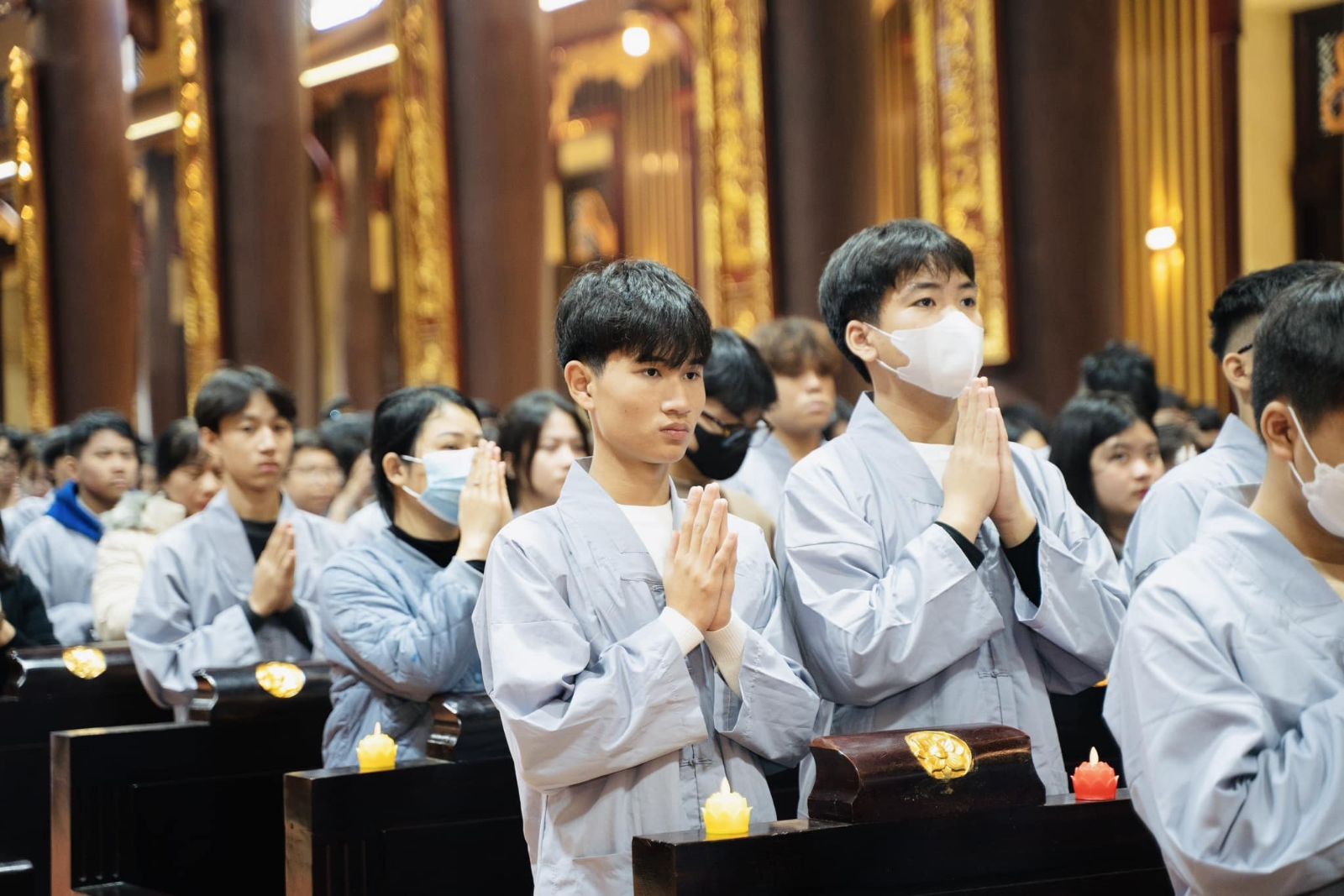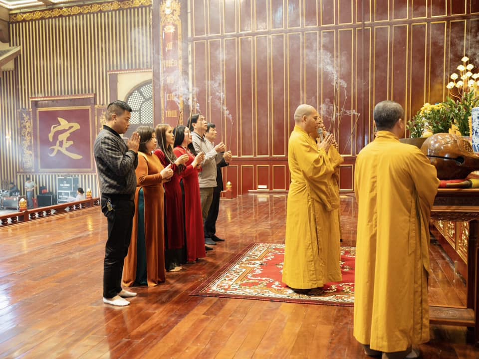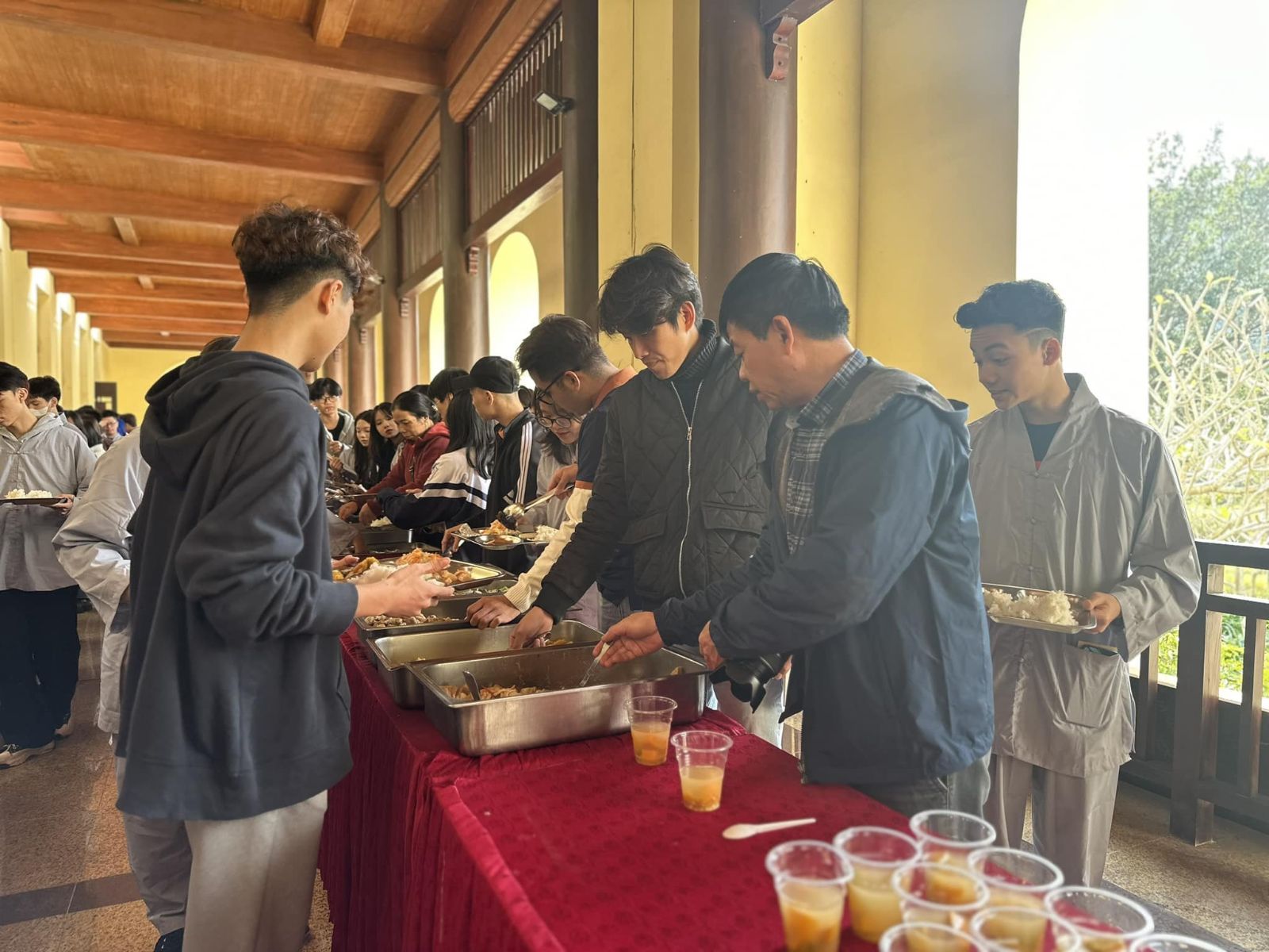 Cùng buổi, các em được trải nghiệm những hoạt động như: Đồng diễn các tiết mục văn nghệ cúng dàng lên chư Tôn Đức, dùng cơm theo nghi thức thiền môn…