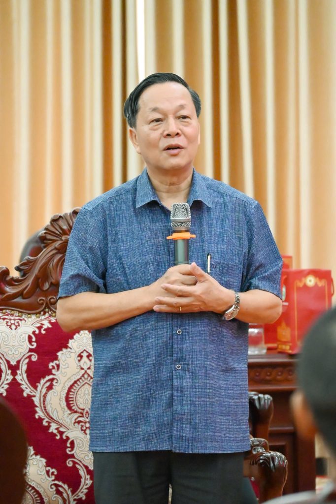 Hoà thượng Thích Thanh Đạt, Uỷ viên Thường trực Hội đồng Trị sự, Chủ tịch Hội đồng Khoa học Học viện phát biểu tại buổi gặp mặt
