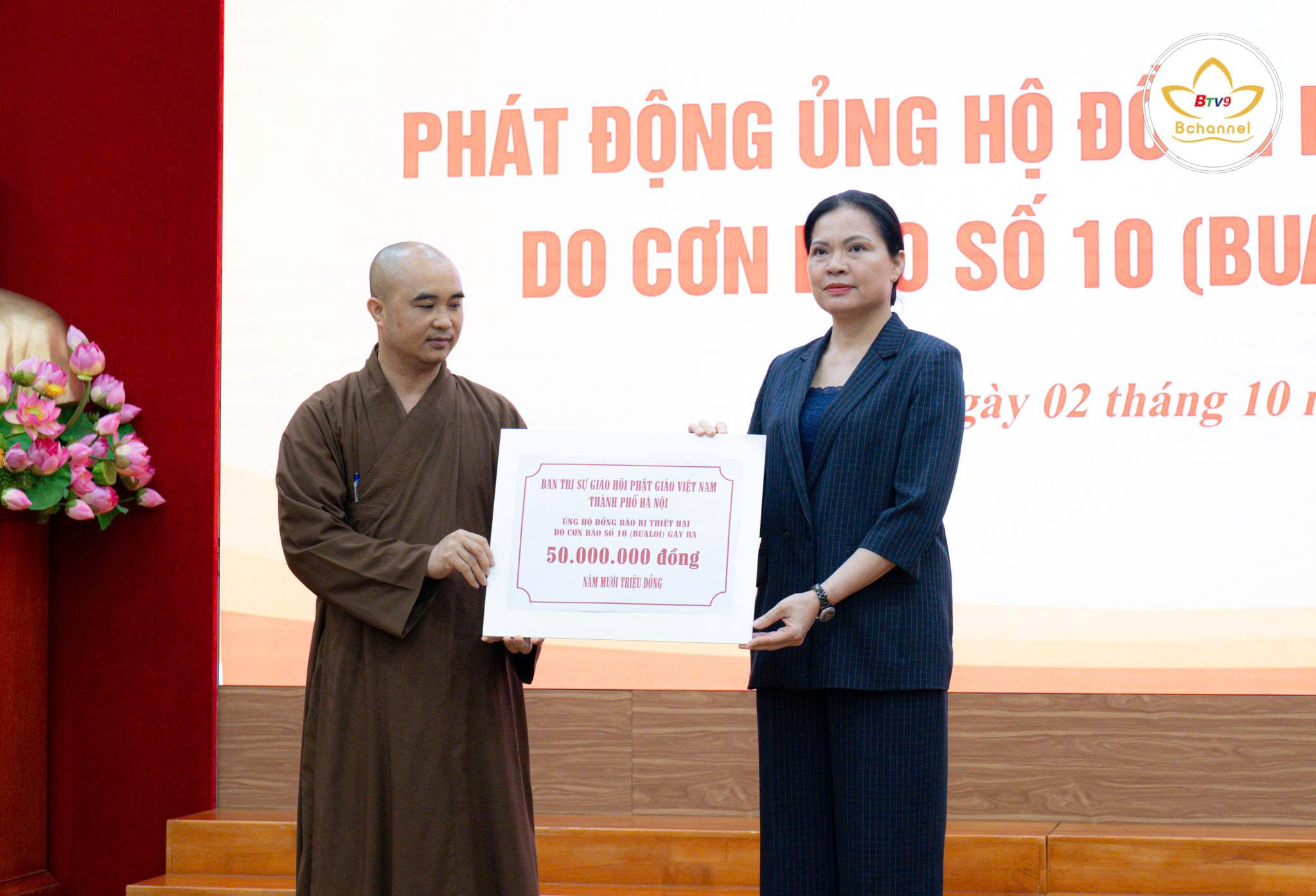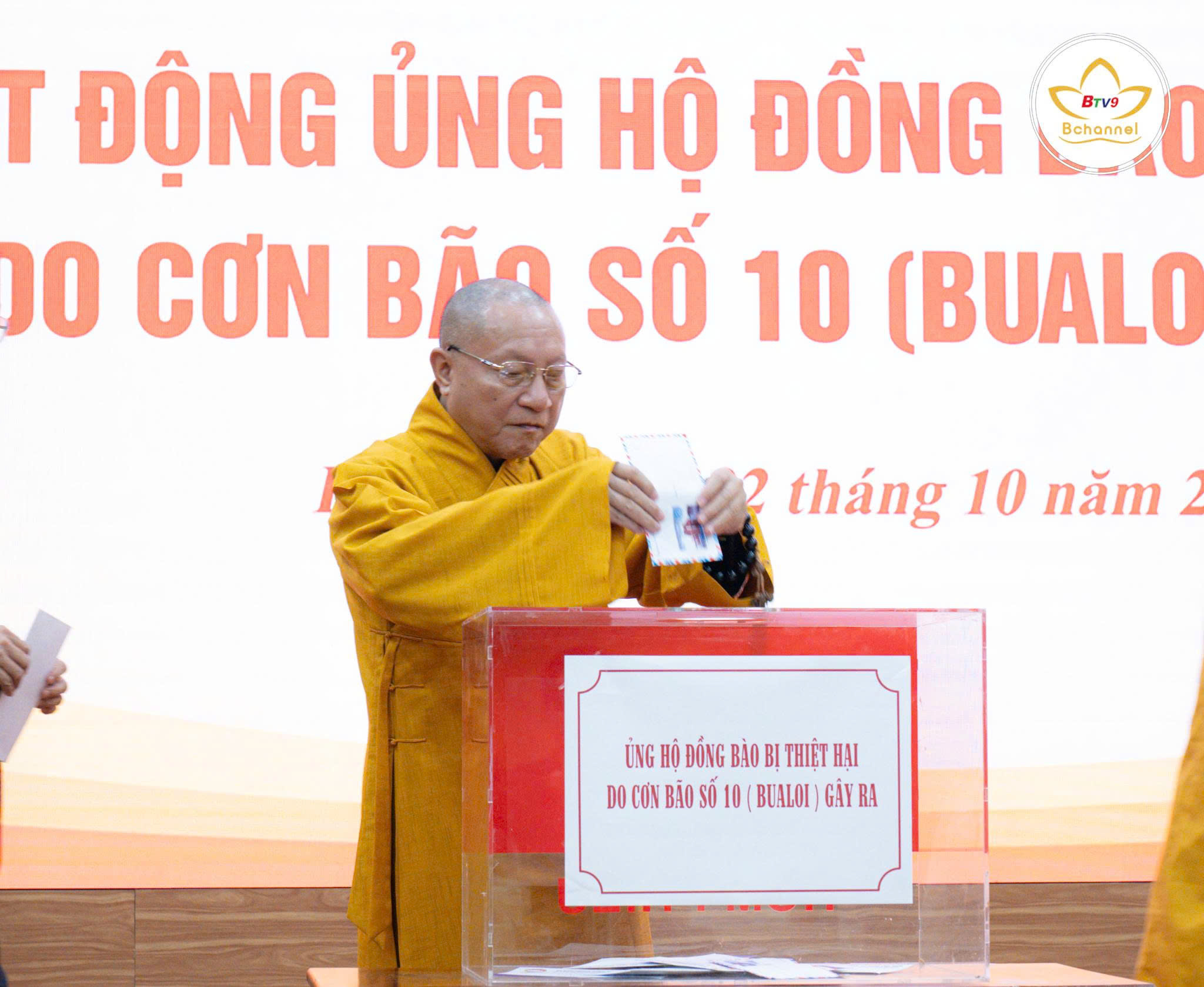 Tại buổi lễ, Giáo hội Phật giáo Việt Nam đã trao số tiền ủng hộ 500 triệu đồng, đồng thời Ban Trị sự GHPGVN TP. Hà Nội cũng ủng hộ 50 triệu đồng nhằm góp phần sẻ chia khó khăn với bà con vùng bão. Chư Tôn đức khẳng định tinh thần “từ bi – cứu khổ” luôn là kim chỉ nam hành động của Tăng Ni, Phật tử. Hưởng ứng lời kêu gọi của Ủy ban Mặt trận Tổ quốc, Giáo hội sẽ tiếp tục vận động Tăng Ni, Phật tử trong và ngoài nước cùng chung tay ủng hộ đồng bào, hướng về đồng bào miền Trung và các tỉnh bị ảnh hưởng bởi thiên tai.