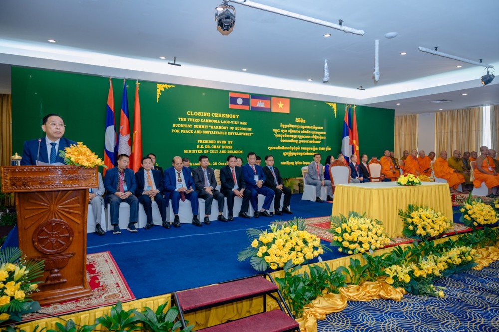 Chiều ngày 28-10, tại Thủ đô Phnom Penh, Campuchia, Hội nghị Thượng đỉnh Phật giáo ba nước Campuchia – Lào – Việt Nam lần thứ III đã trang nghiêm bế mạc, khép lại chương trình làm việc với nhiều kết quả ý nghĩa trong tinh thần đoàn kết, hòa hợp và hữu nghị.