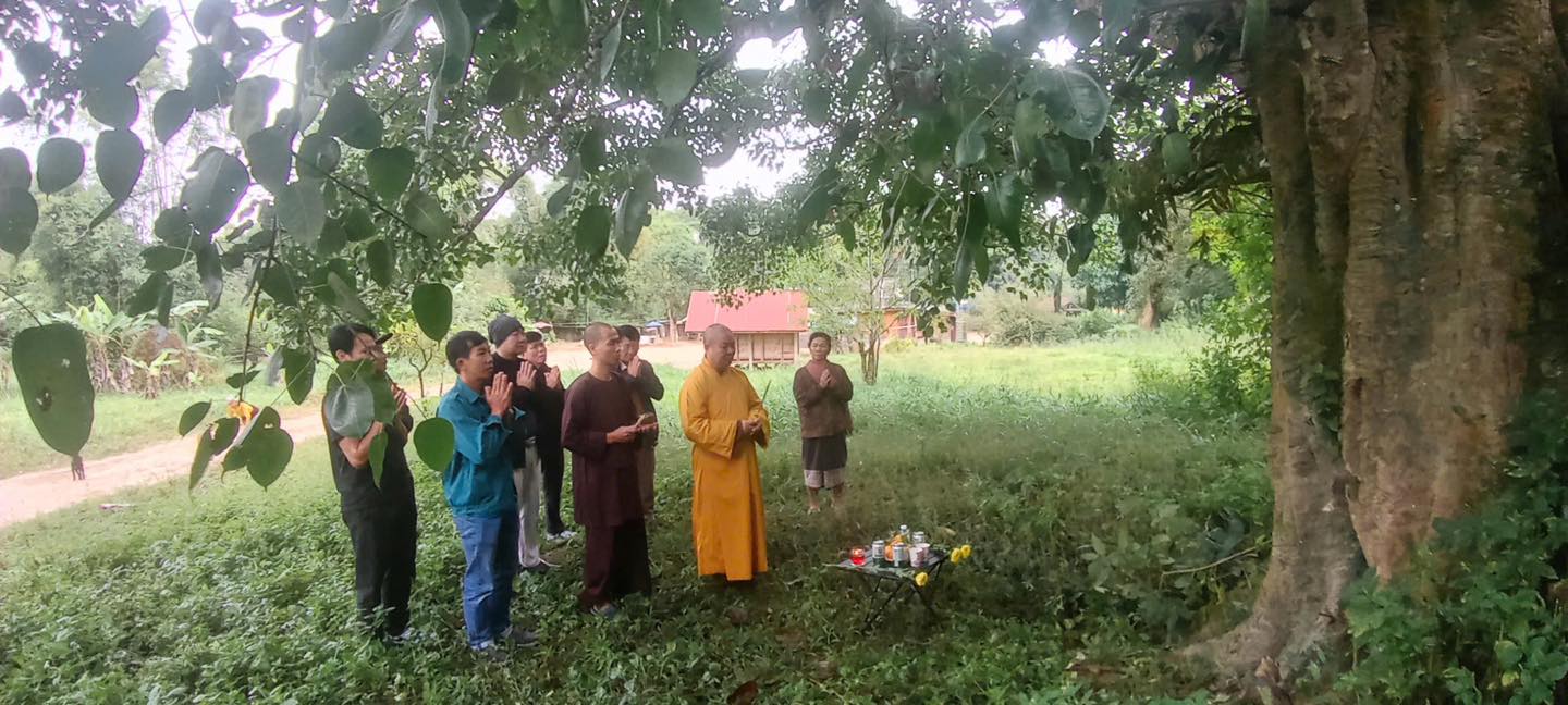 Ba cây đầu tiên được trồng trong đợt trước đã bén rễ xanh tươi trên mảnh đất thiêng liêng nơi đây. Hôm nay, đoàn tiếp tục thỉnh thêm bốn cây Bồ đề từ các bản làng xa xôi về, hoàn thành việc trồng đủ bảy cây – biểu trưng cho bảy yếu tố giác ngộ trong Phật giáo.